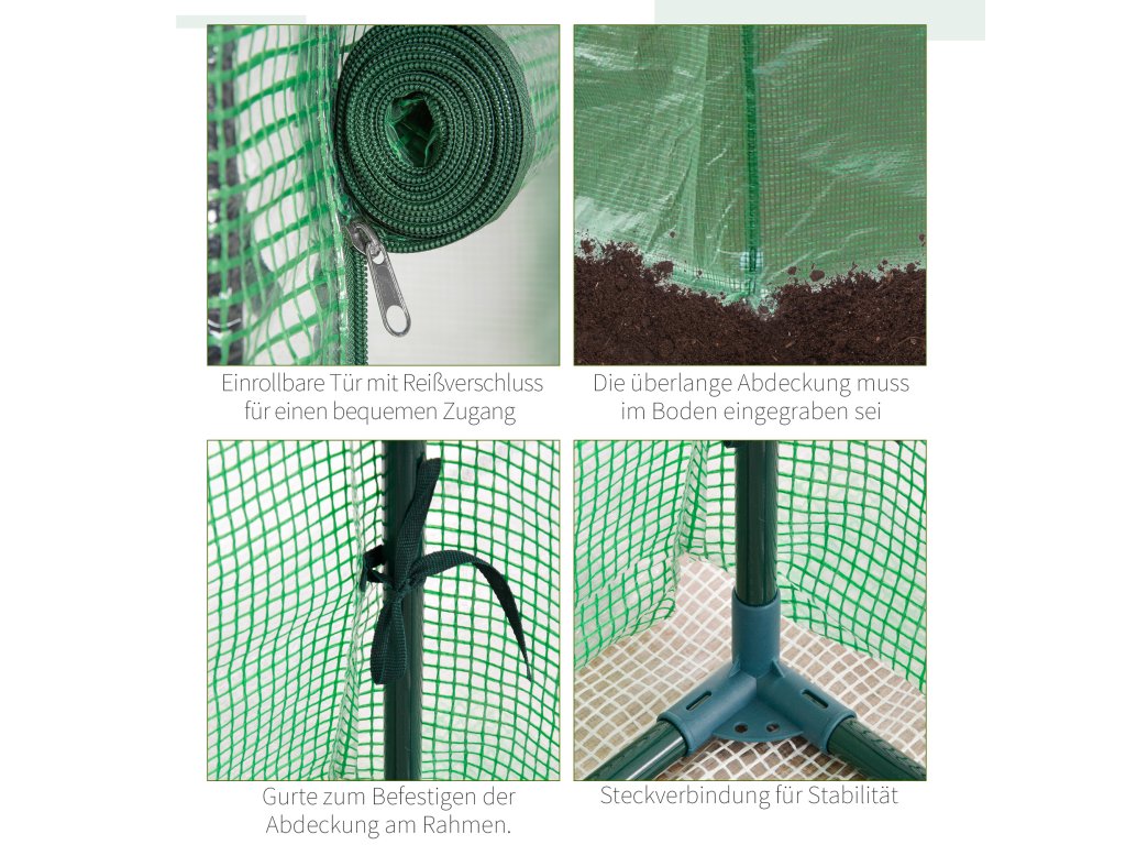 - PLASTOVÝ KRYT: Plně uzavřený, vodotěsný a UV záření odolný plastový kryt udržuje vlhkost pro pěstování tropických rostlin a propouští vysoce energetické sluneční světlo. Prodloužené okraje o 9 cm se zaryjí hluboko do země, čímž se kryt stabilizuje a utěsní a zabrání hromadění dešťové vody.