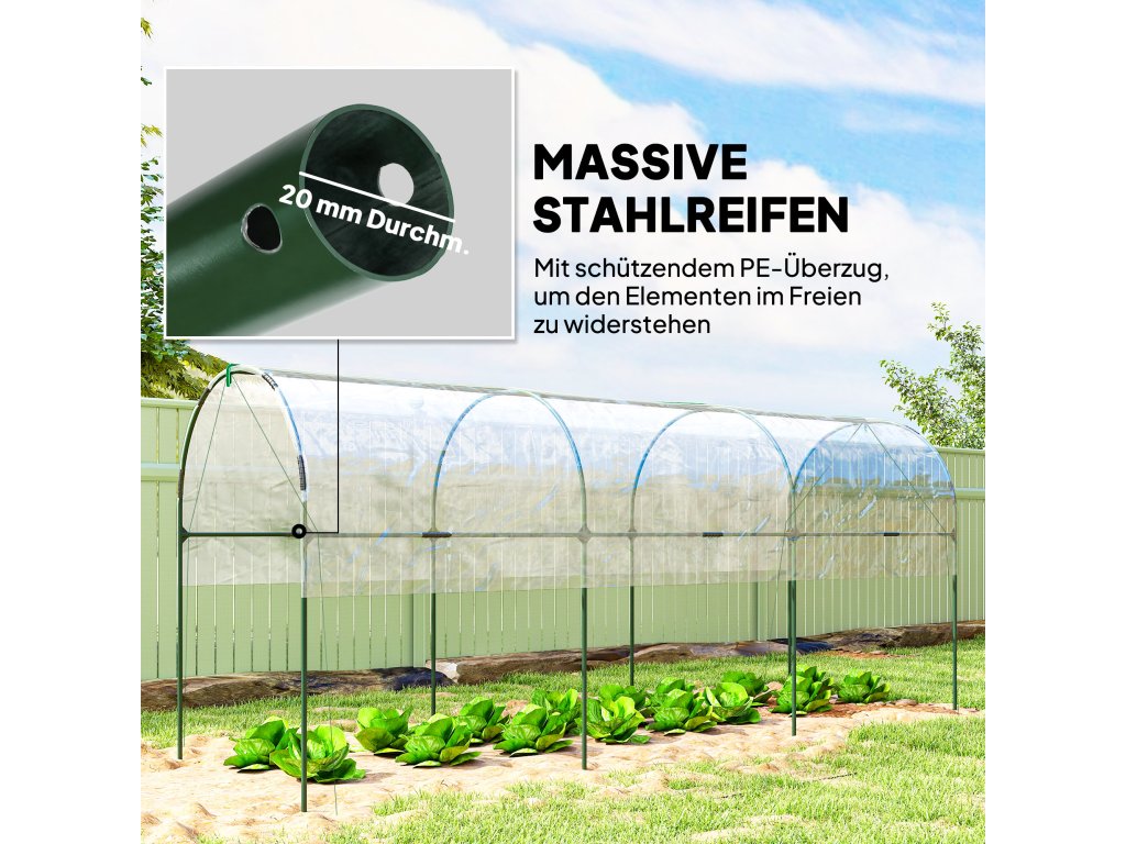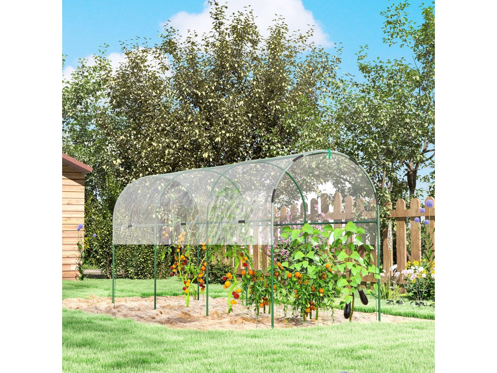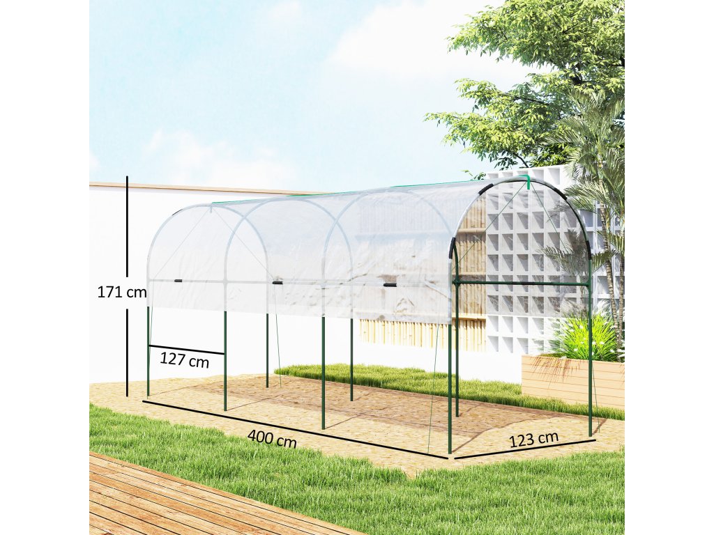 Outsunny skleník ziměodolný fóliový skleník s obloukovou střechou, skleník s ukotvením v zemi 400 x 123 x 171cm Transparentní
