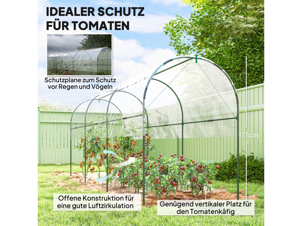 Objevte skleník na rajčata, který splní všechna vaše přání! Tento speciálně navržený skleník od společnosti Outsunny nabízí dostatek vertikálního prostoru pro pěstování rajčat a dalších rostlin. Vaše rostliny zůstanou chráněny před deštěm a ptačím trusem díky zakřivené střeše s nepromokavou plachtou. O stabilitu se nemusíte bát: pomocí zemních hrotů postavte rám mimo dosah větru a brzy si můžete pochutnávat na rajčatech z vlastní zahrady.
