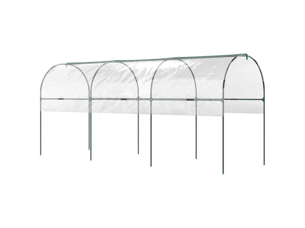 - Snadná instalace: Jednoduše zasuňte tyče do třírohových a čtyřrohových spojů, abyste panely spojili dohromady, a poté plachtu bezpečně připevněte k rámu pomocí plastových spon. Doporučujeme, aby tento domek na rajčata sestavovali dva lidé.