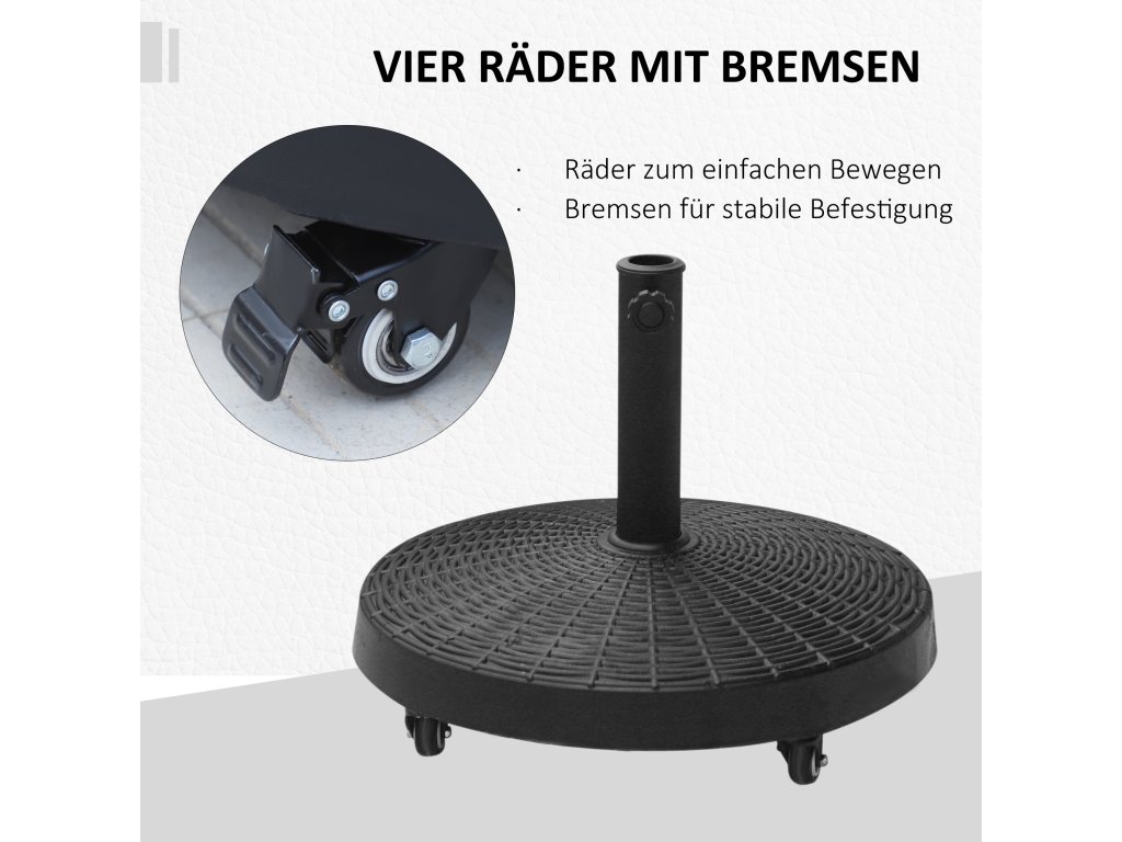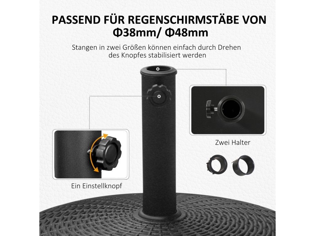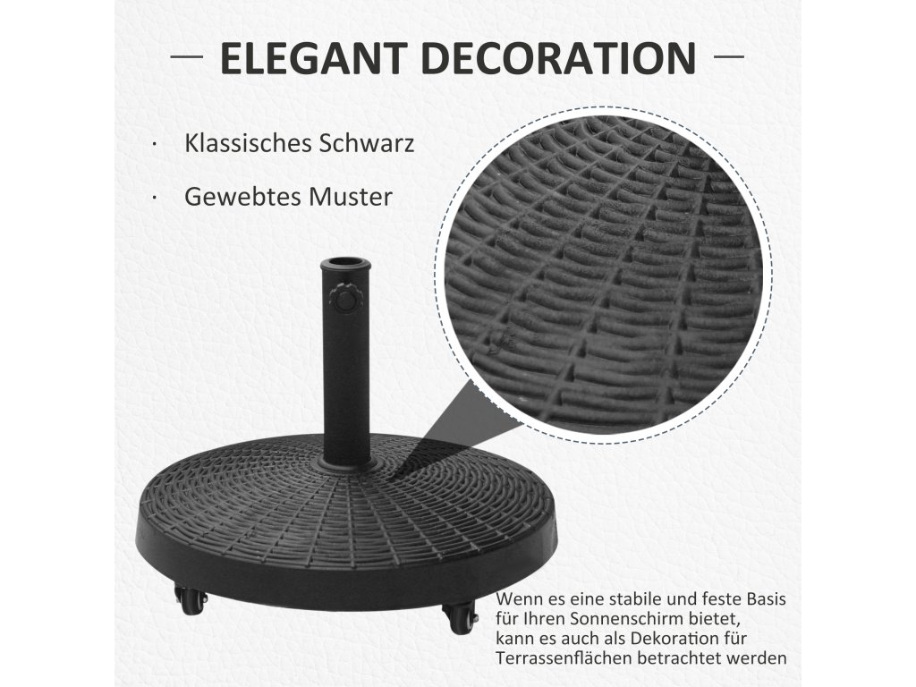 Outsunny stojan na slunečník 25kg stojan na slunečník s kolečky kulatý stojan ratanového vzhledu na tyče slunečníku s Ø38/48 mm stojan na zahradu, balkon, černý