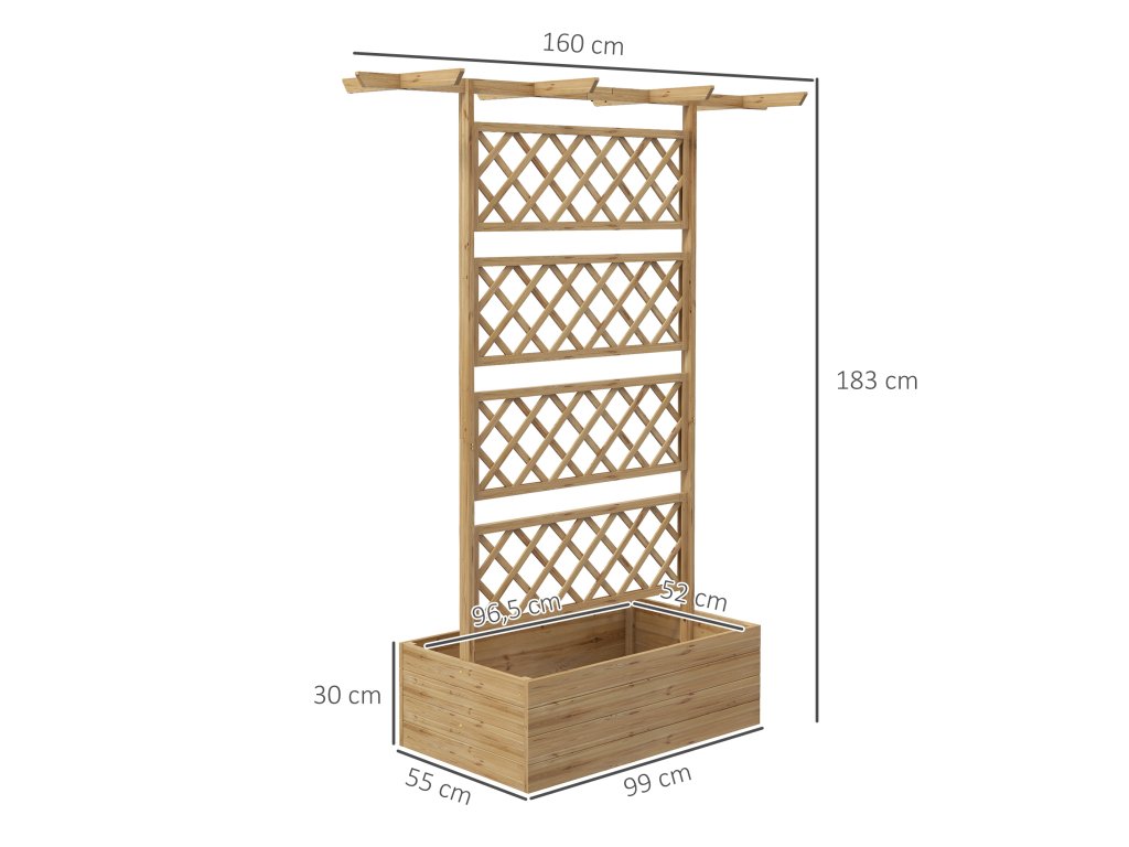 Tento stylový vyvýšený balkonový záhon od společnosti Outsunny je vybaven zadní mříží a stříškou pro zavěšené rostliny. Konstrukce květinového truhlíku je vyrobena z robustního jedlového dřeva a je ideální pro venkovní použití. Oživte svůj domov vyvýšeným záhonem s mříží a předveďte své rostliny v atraktivním stylu.