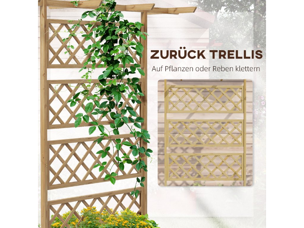 - ✔ Mřížka v zadní části, která umožňuje rostlinám a révě růst vzhůru a dokola