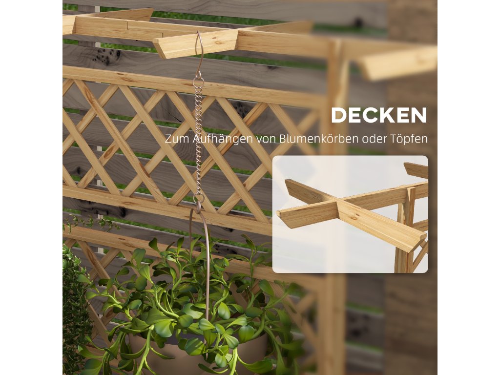 - Včetně střechy: Malá dřevěná střecha vyvýšeného záhonu poskytuje ideální prostor pro závěsné košíky a květináče