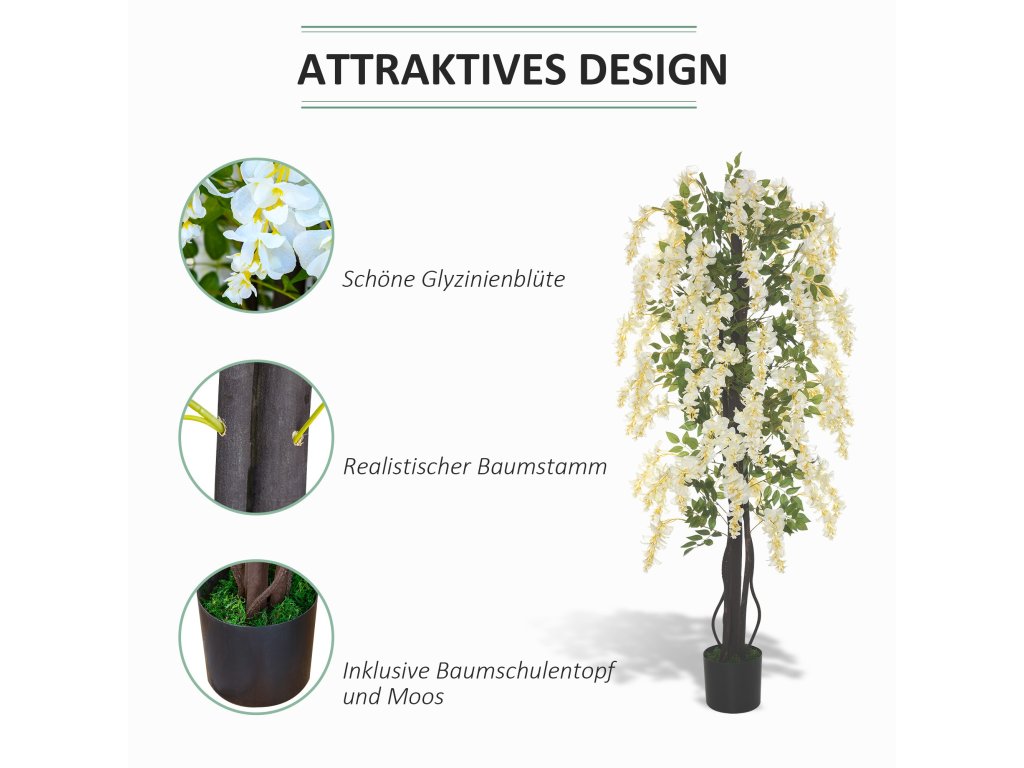 Outsunny umělá vistárie velká 165 cm umělá rostlina, plastové umělé rostliny umělé květiny v květináči, falešná rostlina jako skutečná pro kancelář obývací pokoj ložnice moderní dekorace dárek
