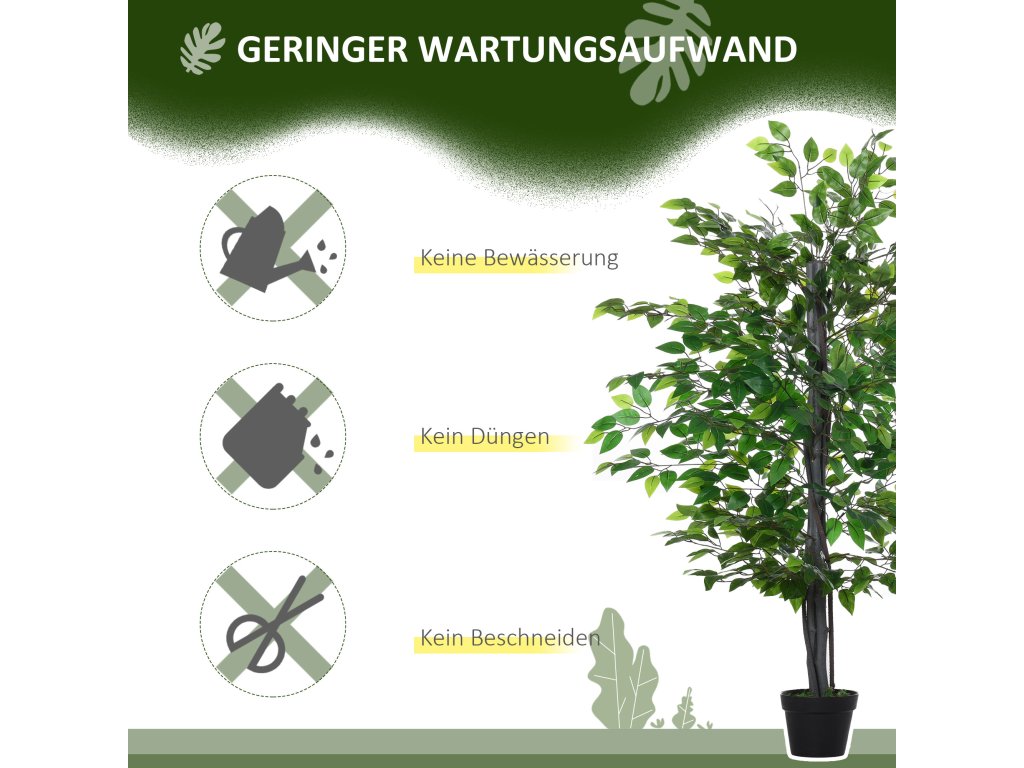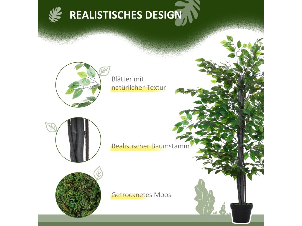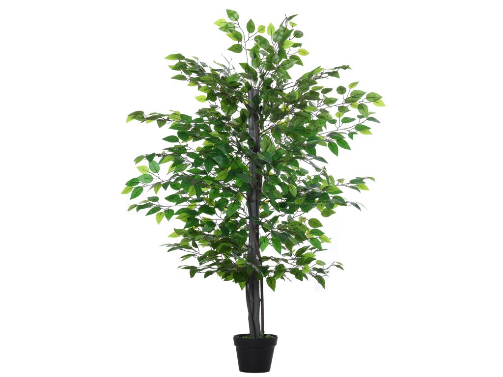 Outsunny Umělý strom Ficus velký 145 cm, umělý strom, umělá rostlina, plastové umělé rostliny v květináči, falešná rostlina jako skutečná pro obývací pokoj ložnice kancelář zahrada moderní dekorace dárek
