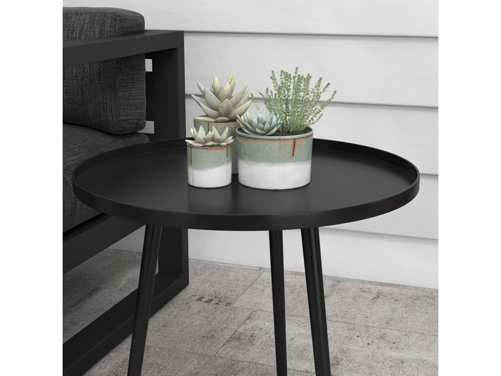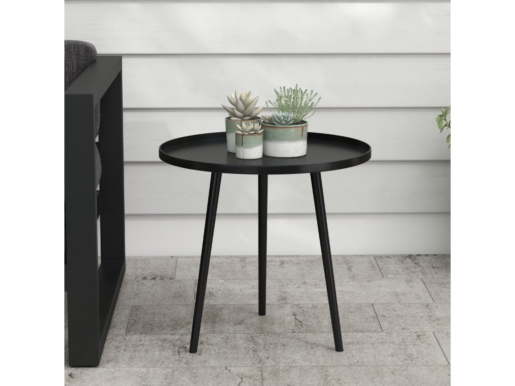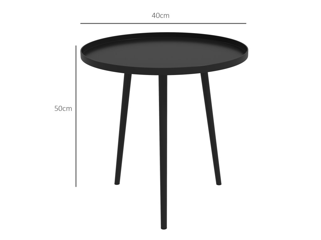 Outsunny venkovní stolek, zahradní stůl, kulatý stůl na terasu, ocel, F40 x 50Hcm, černá barva