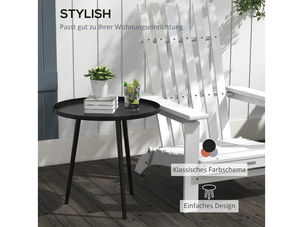 Tento venkovní stolek od společnosti Outsunny je dokonalým doplňkem vašeho domova. Ať už potřebujete venkovní stolek na balkon pro příjemné večery venku, nebo praktickou odkládací plochu vedle pohovky, tento stolek na balkon je ideální pro každou příležitost. Ochranný okraj desky stolu navíc zabraňuje sklouznutí předmětů. Tento stolek je vyroben z robustní oceli, je tedy mimořádně odolný a odolný vůči povětrnostním vlivům.