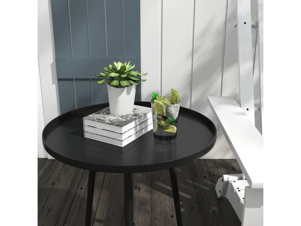 - ✔ Zvýšený okraj kulatého zahradního stolku zabraňuje pádu předmětů