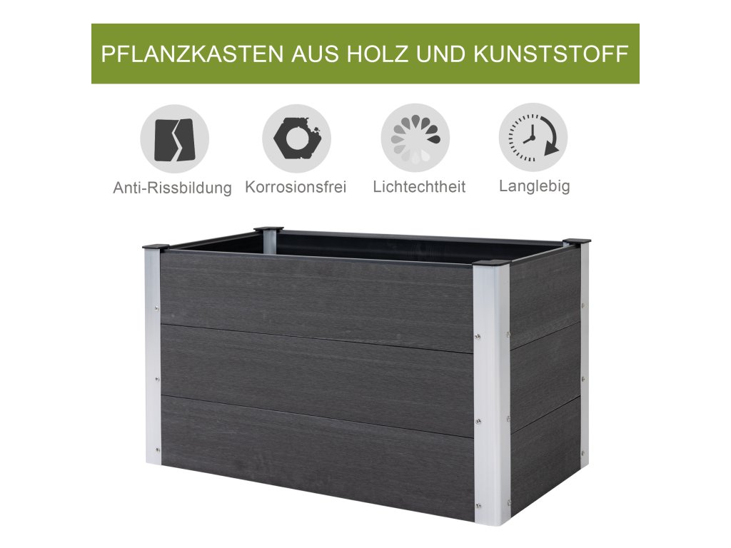 - ODOLNOST: Truhlík na květináč vyrobený z odolného dřevoplastového kompozitu (WPC) a hliníku je mimořádně robustní a odolný. I po dlouhé době zůstává bez koroze a nevybledne.