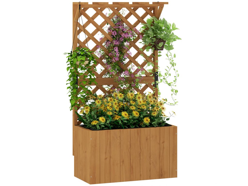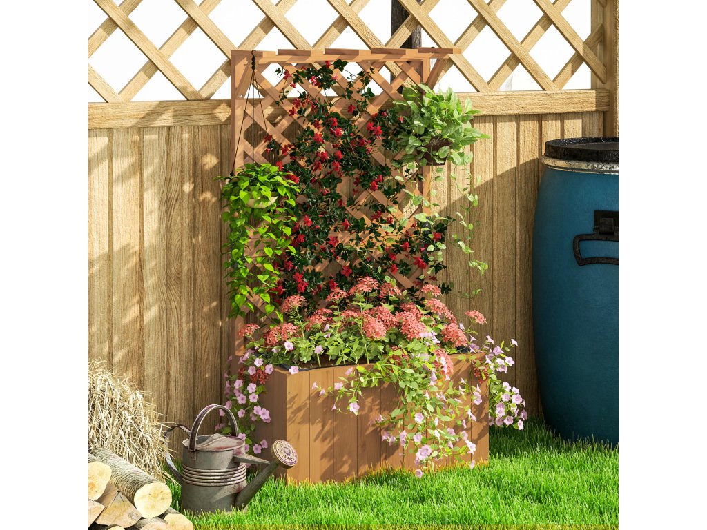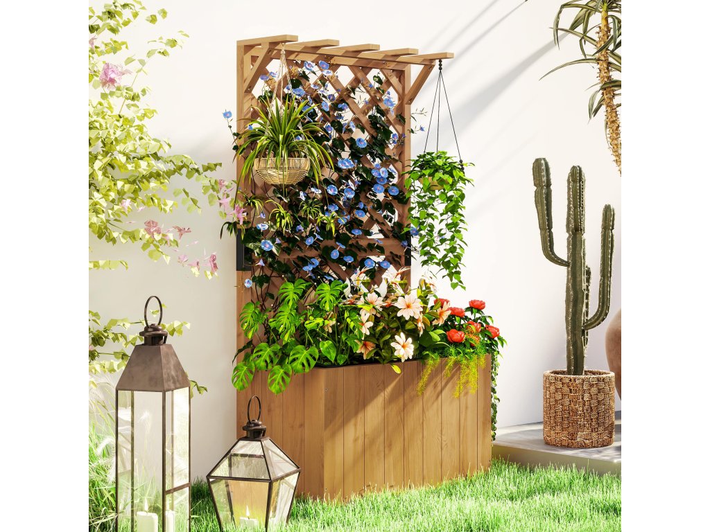 Outsunny vyvýšený záhonový květináč s mříží, mřížový květináč dřevo, zahradní mříž 64 x 33 x 122cm přírodní dřevo