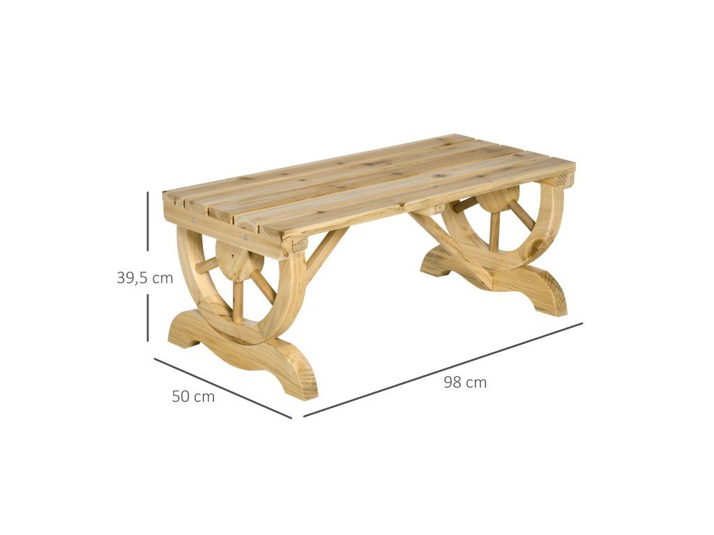 - RAFINOVANÁ KONSTRUKCE: Nohy této dřevěné zahradní lavice připomínají kola od vozu a dodají vašemu venkovnímu prostředí sofistikovaný nádech.