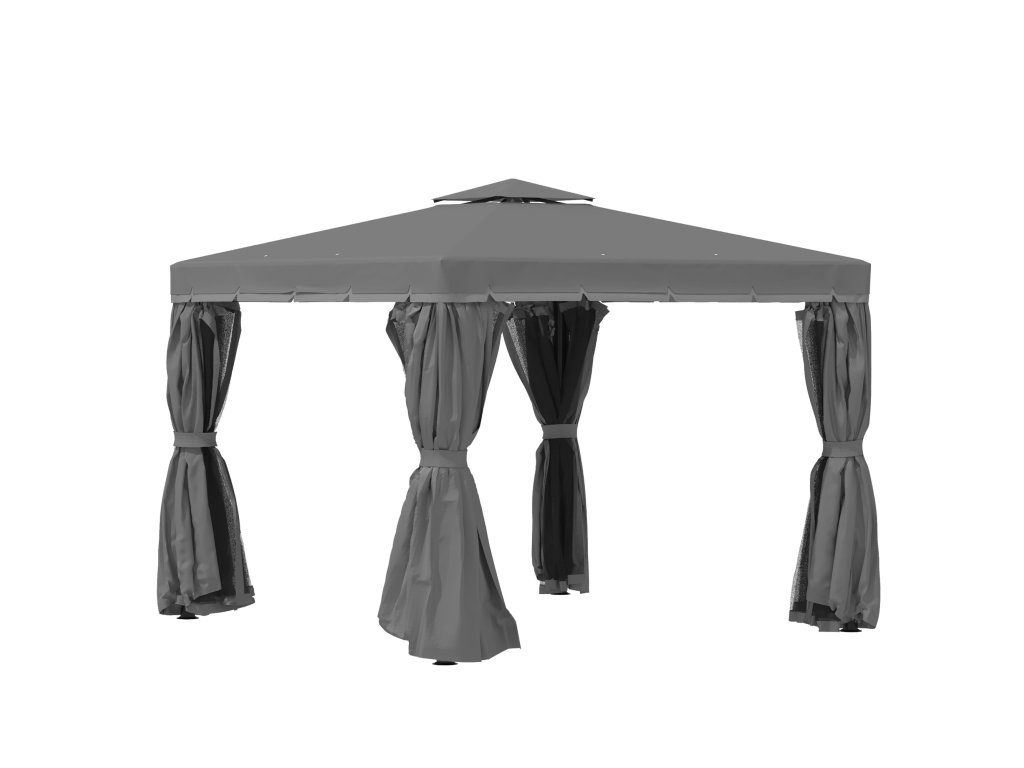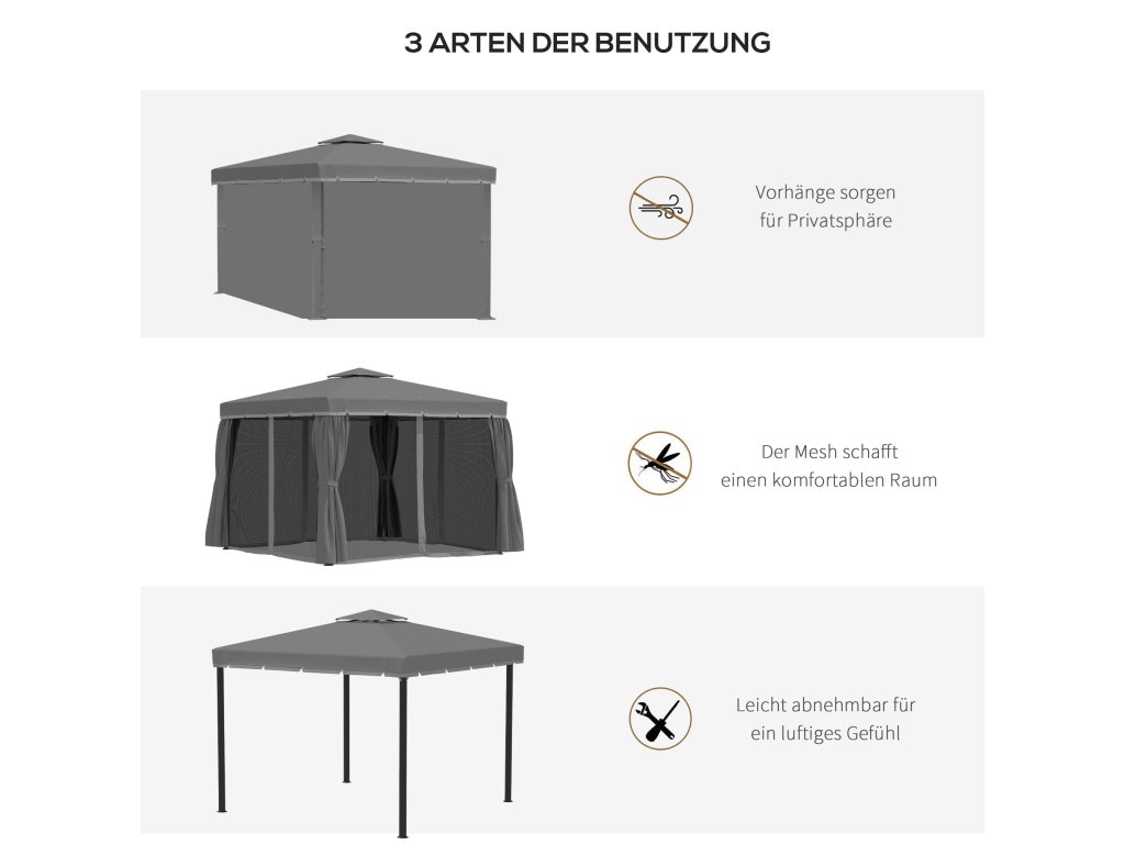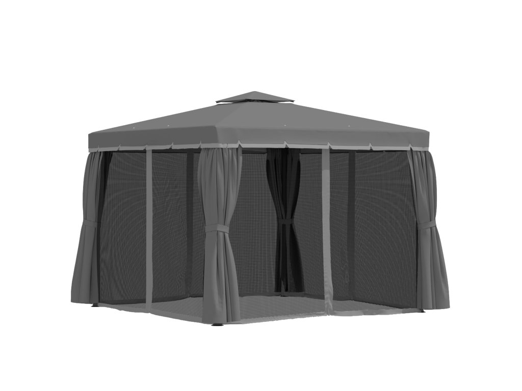 Outsunny zahradní pavilon altán 2,96 x 2,96 m zahradní stan s dvojitou střechou párty stan se 4 x bočními panely moskytiéra odolná proti povětrnostním vlivům hliník polyester tmavě šedá