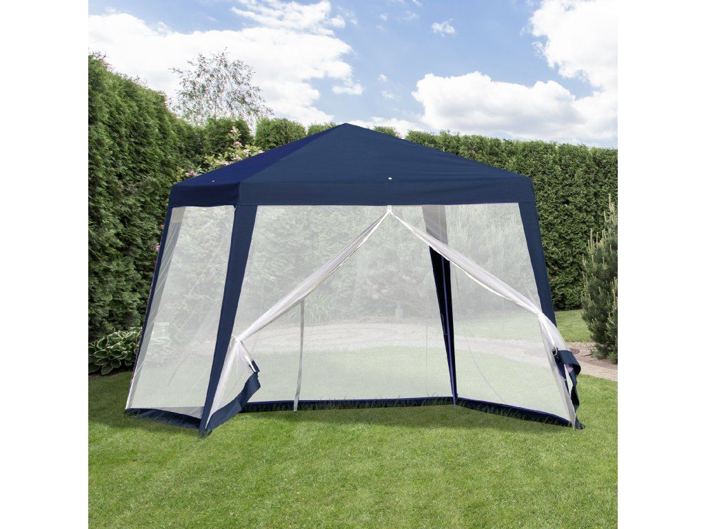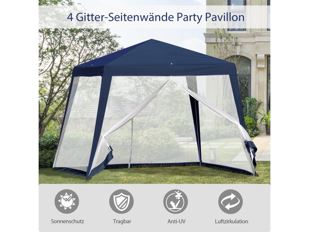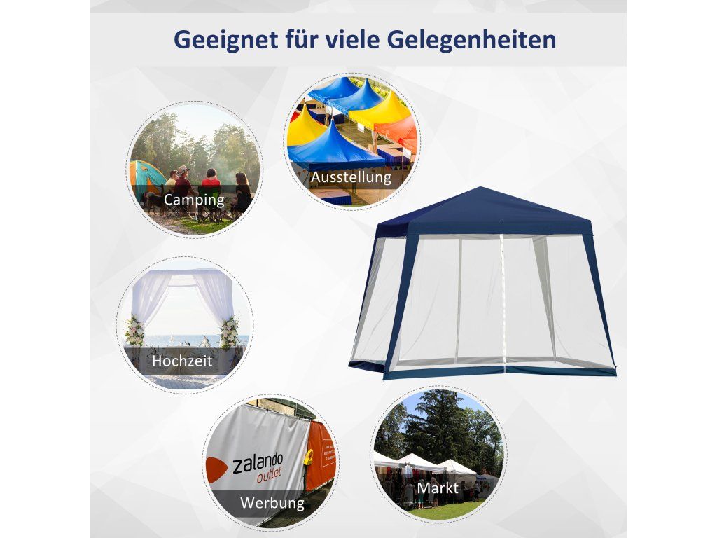 Outsunny zahradní pavilon altán stan párty stan odolný proti povětrnostním vlivům stan s moskytiérou kov + polyester modrá 3 x 3 m