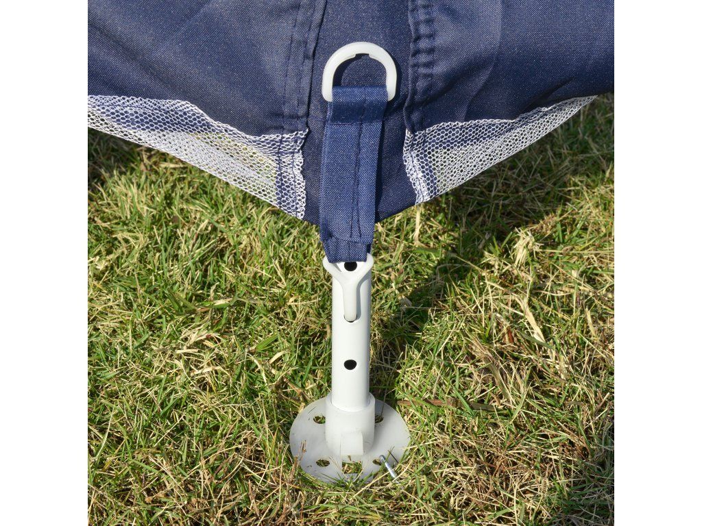 - ROBUSTNÍ RÁM: Práškově lakované kovové trubky jsou robustní a stabilní. Osm kolíků pro ukotvení do země a čtyři lana, která jsou součástí dodávky, zajišťují dodatečnou stabilitu.