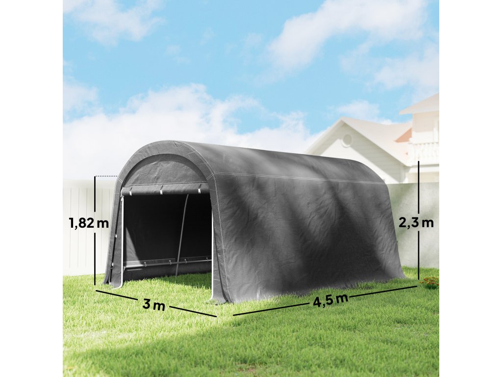 Outsunny / Zahradní přístřešek s plastovou plachtou, stan na nářadí, rozestavitelná garáž, 300 Š x 450 D x 230 V cm, tmavě šedý