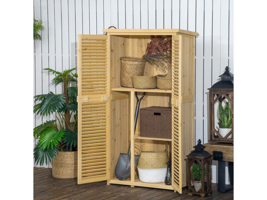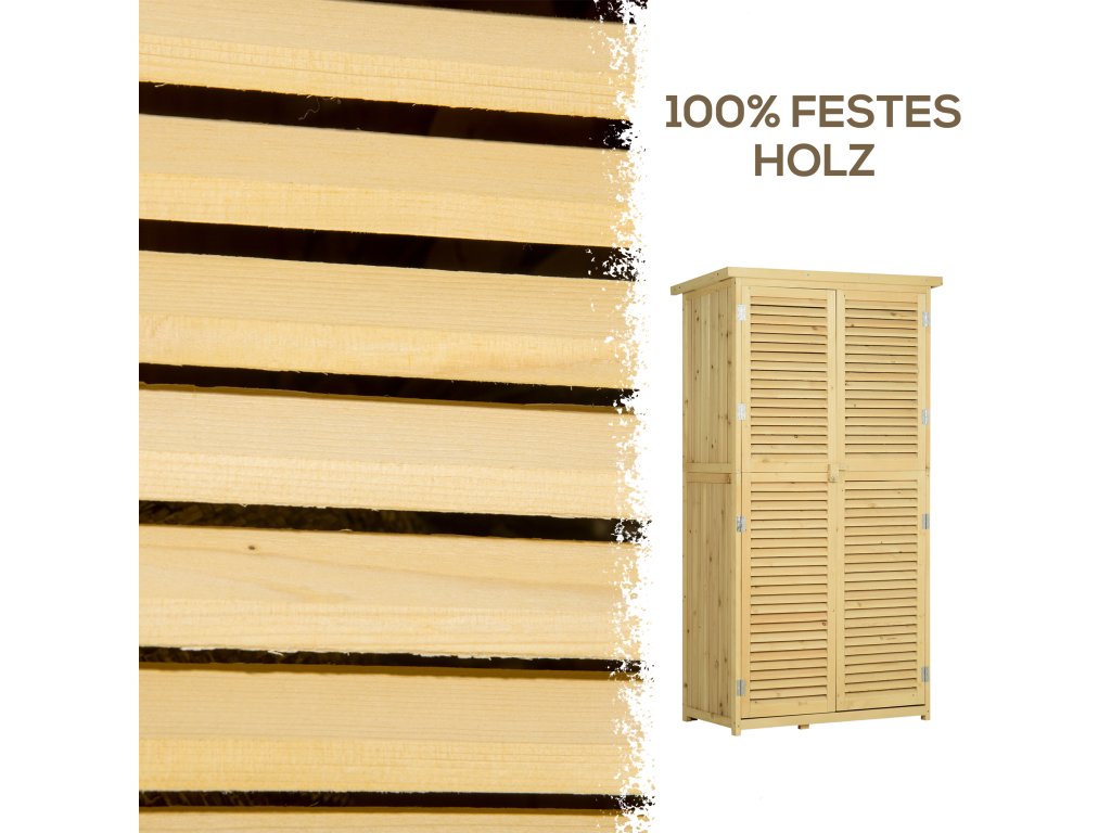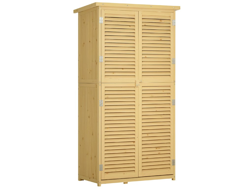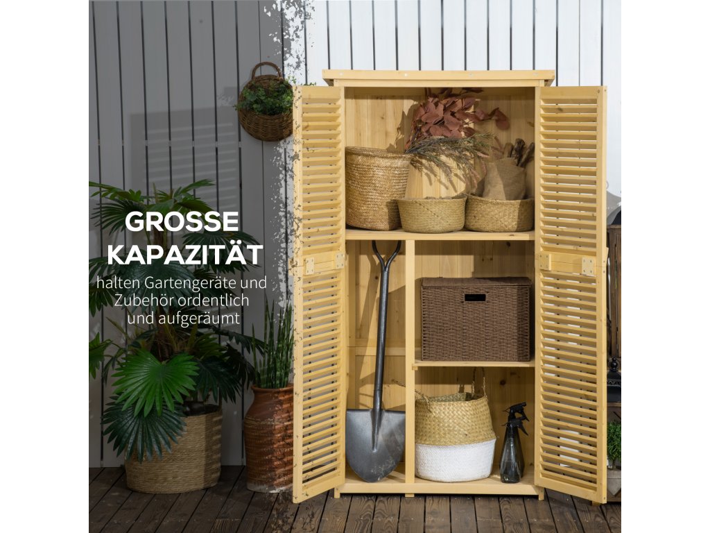 Outsunny zahradní skříňka dřevěná kůlna na nářadí kůlna na nářadí s asfaltovou střechou laťkové dveře skříňka na nářadí kůlna zahrada 4 oddělení přírodní dřevo 87 x 46,5 x 160 cm