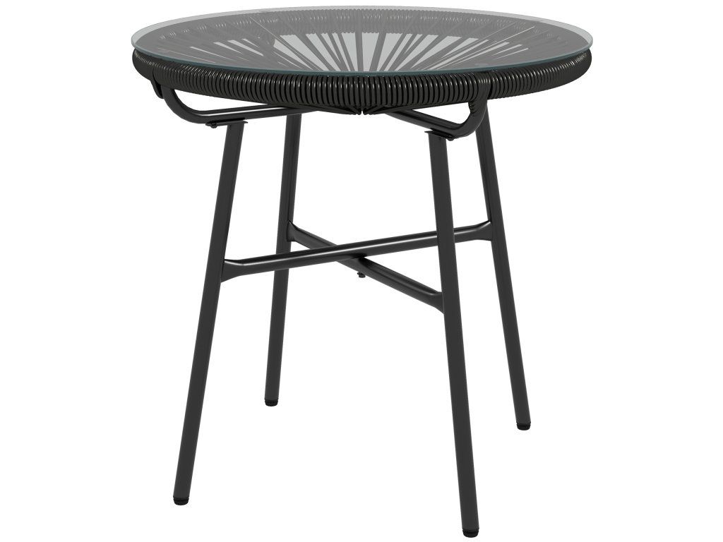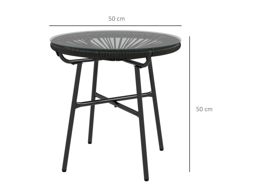 Outsunny zahradní stolek venkovní stolek v boho stylu, PE ratan, tvrzené sklo, odolný proti povětrnostním vlivům, 50 cm x 50 cm x 50 cm, černý