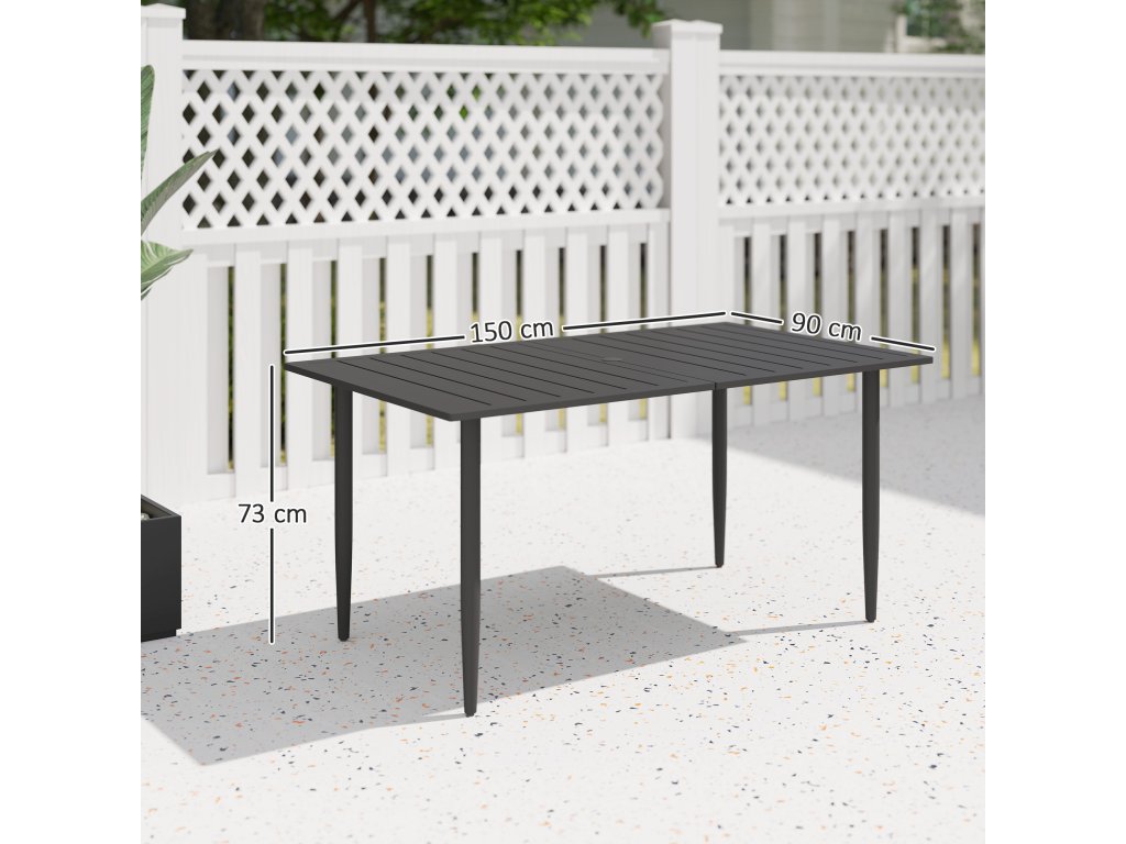 Outsunny zahradní stůl 150x90cm, ocelový balkonový stůl odolný proti povětrnostním vlivům, balkonový stůl s otvorem pro slunečník černý