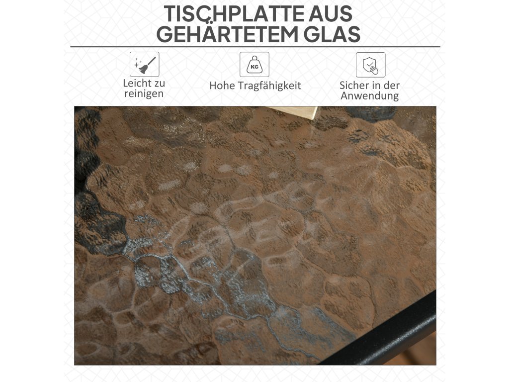 - ✔ Deska stolu z tvrzeného skla je stabilní a bezpečná, strukturovaný povrch dodává styl