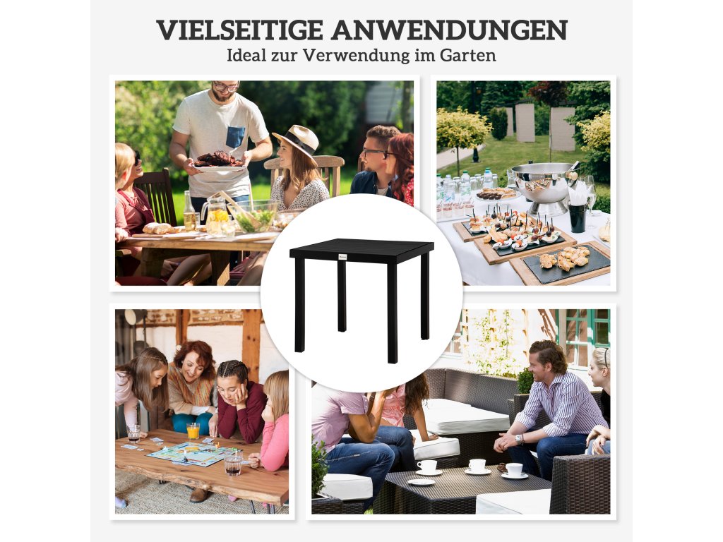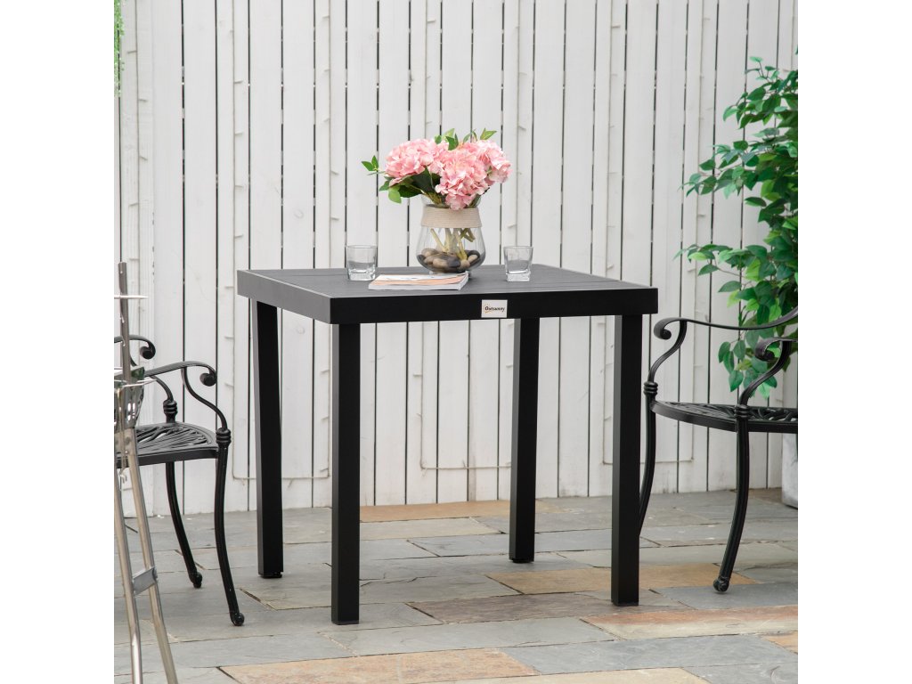 Outsunny zahradní stůl pro 4 osoby jídelní stůl hliníkový stůl zahradní nábytek nábytek do obýváku snadno udržovatelný plast černý 78 x 78 x 74 cm