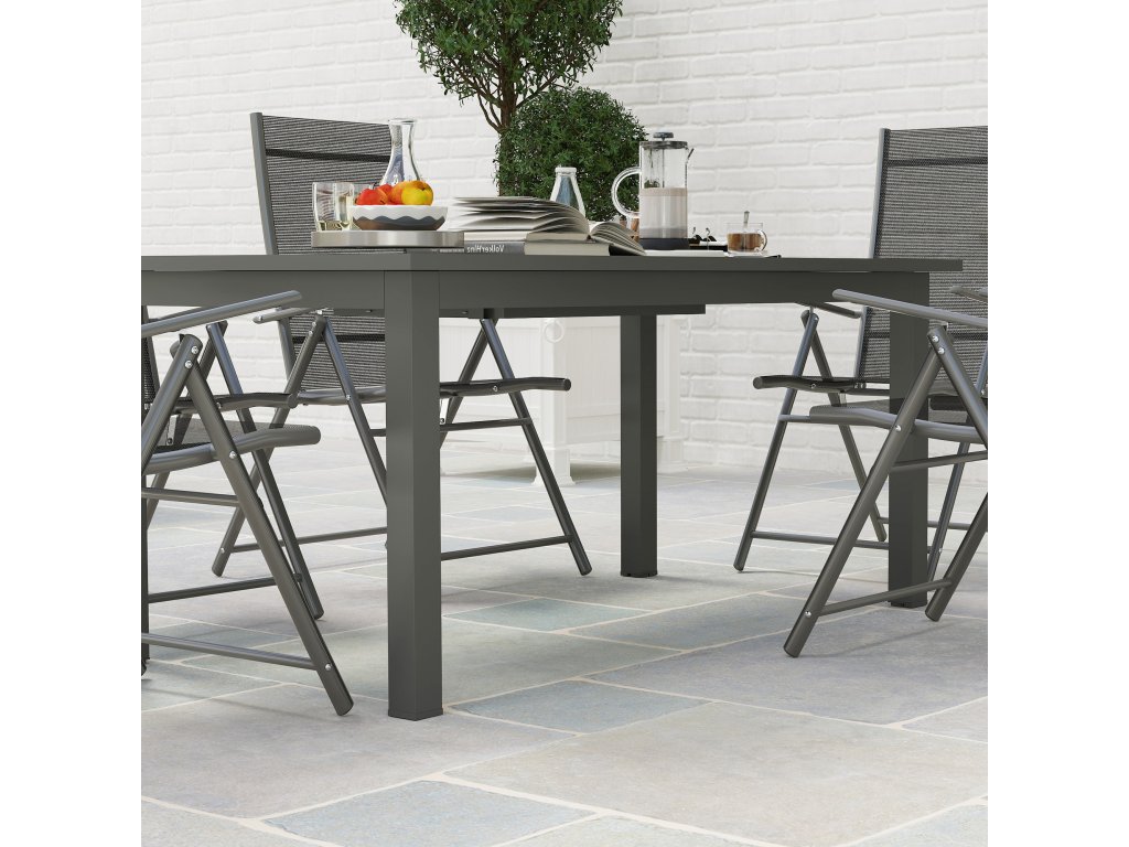 - Rozkládací konstrukce: Tento elegantní zahradní stůl lze rozložit ze 160 cm na 220 cm a pohodlně se k němu vejde 6-8 osob - ideální pro rodinná setkání nebo útulné venkovní večeře.