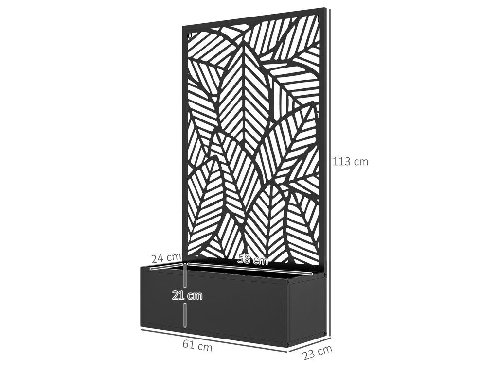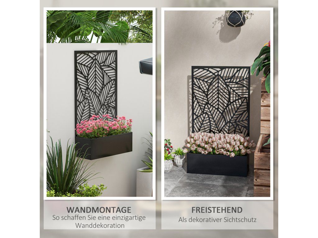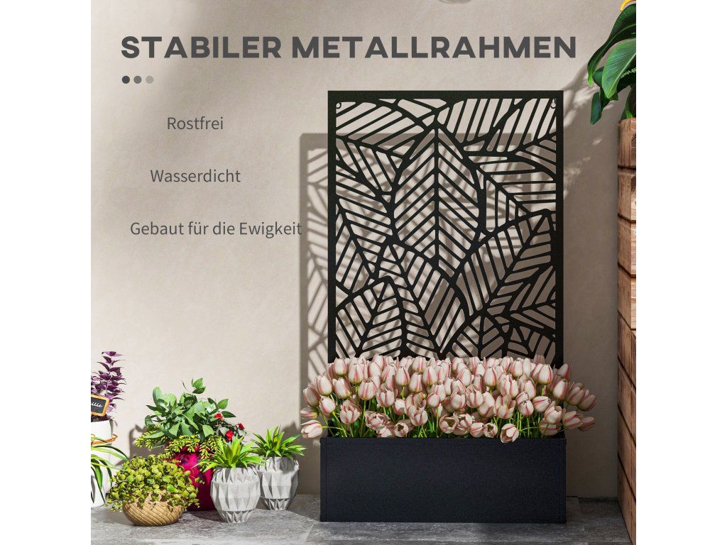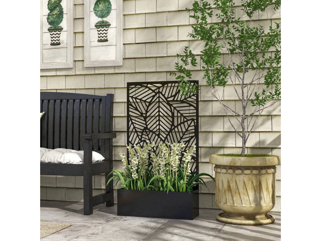 Outsunny zástěna s květinovým záhonem, venkovní zástěna, dělící stěna s květináčem, kovová, černá