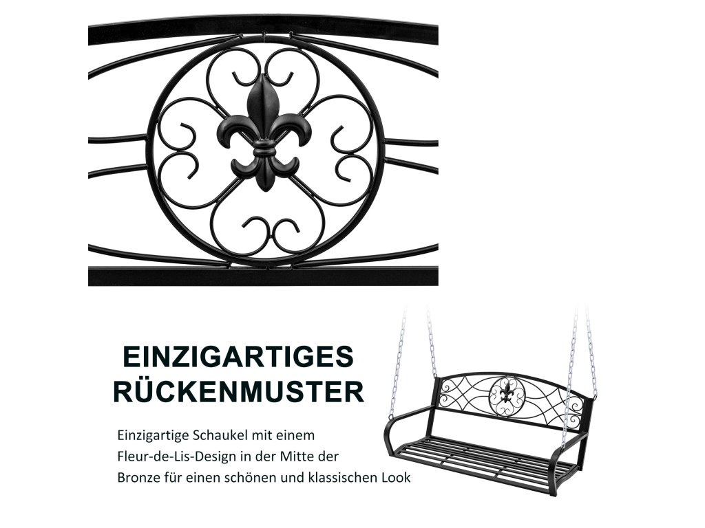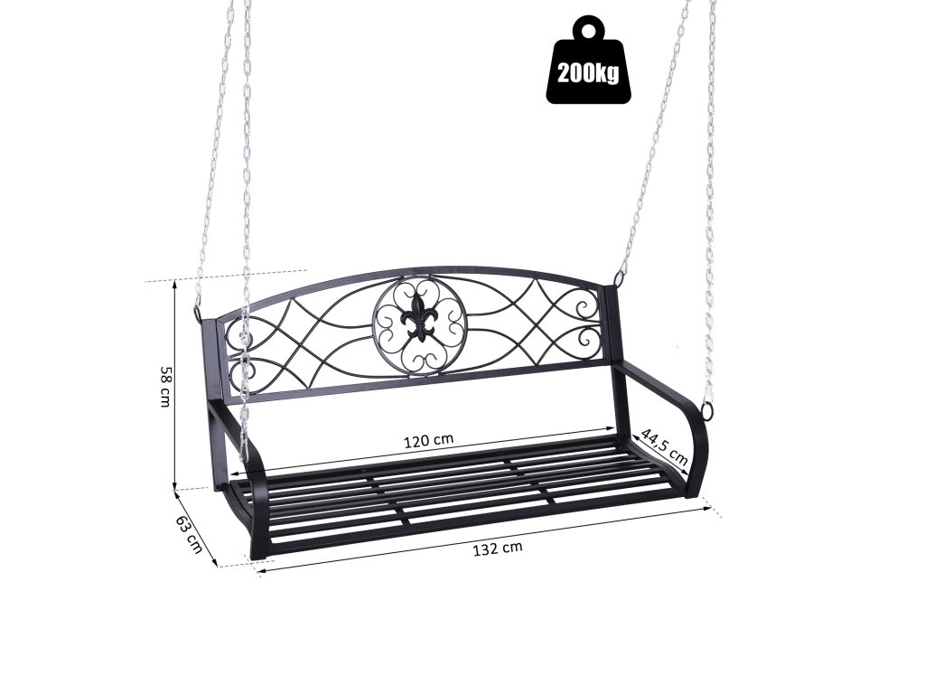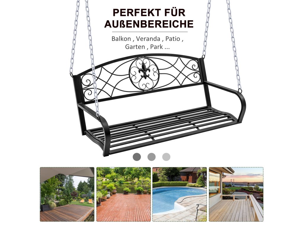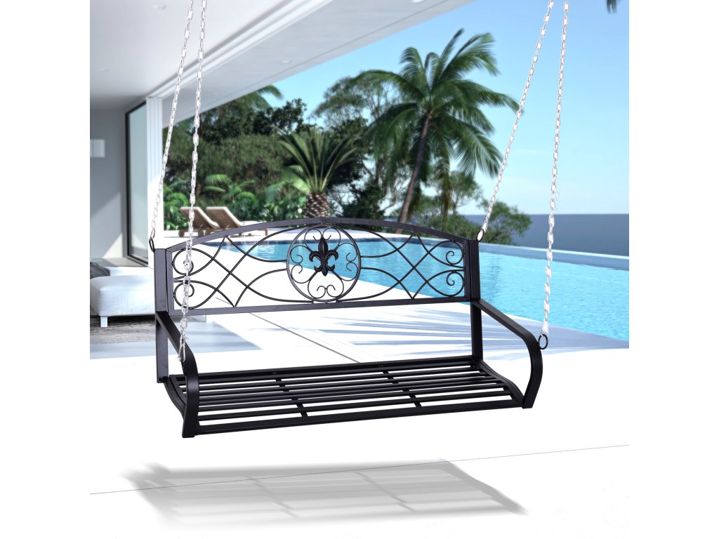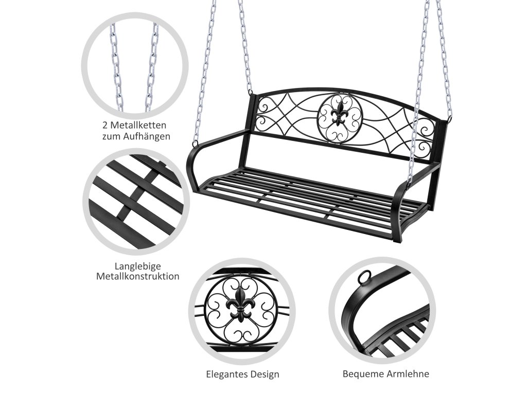 - Závěsná lavice pro dva: užijte si romantické zakončení letních večerů. Vaše kovová houpačka zaujme svým klasickým designem v elegantní černé barvě.