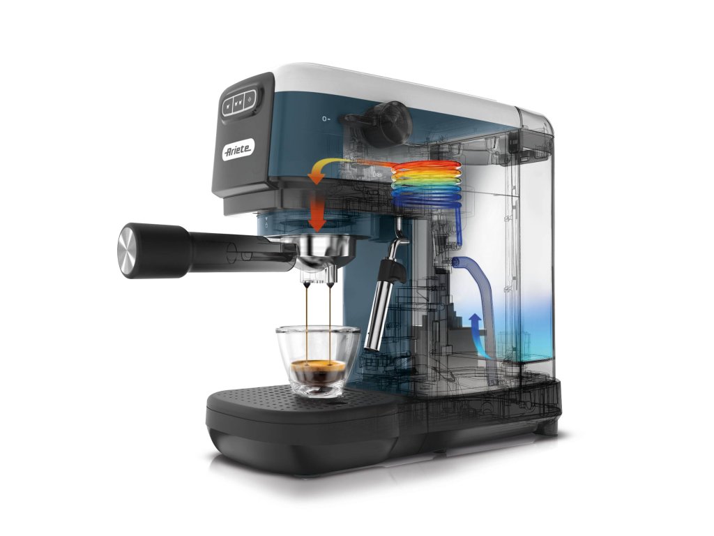 Pákový kávovar • tlak 15 bar • příkon 1300 W • objem nádržky na vodu 1,1 l • zahřátí do 40 vteřin • Maxi cappuccino systém • italské čerpadlo