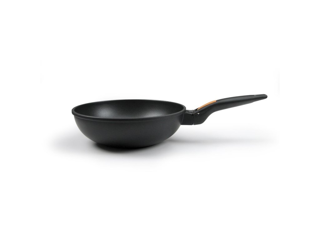 WOK pánev, průměr 28 cm, antiadhezní povrch, odnímatelná rukojeť, na všechny typy ohřevů, mytí v myčce na nádobí.