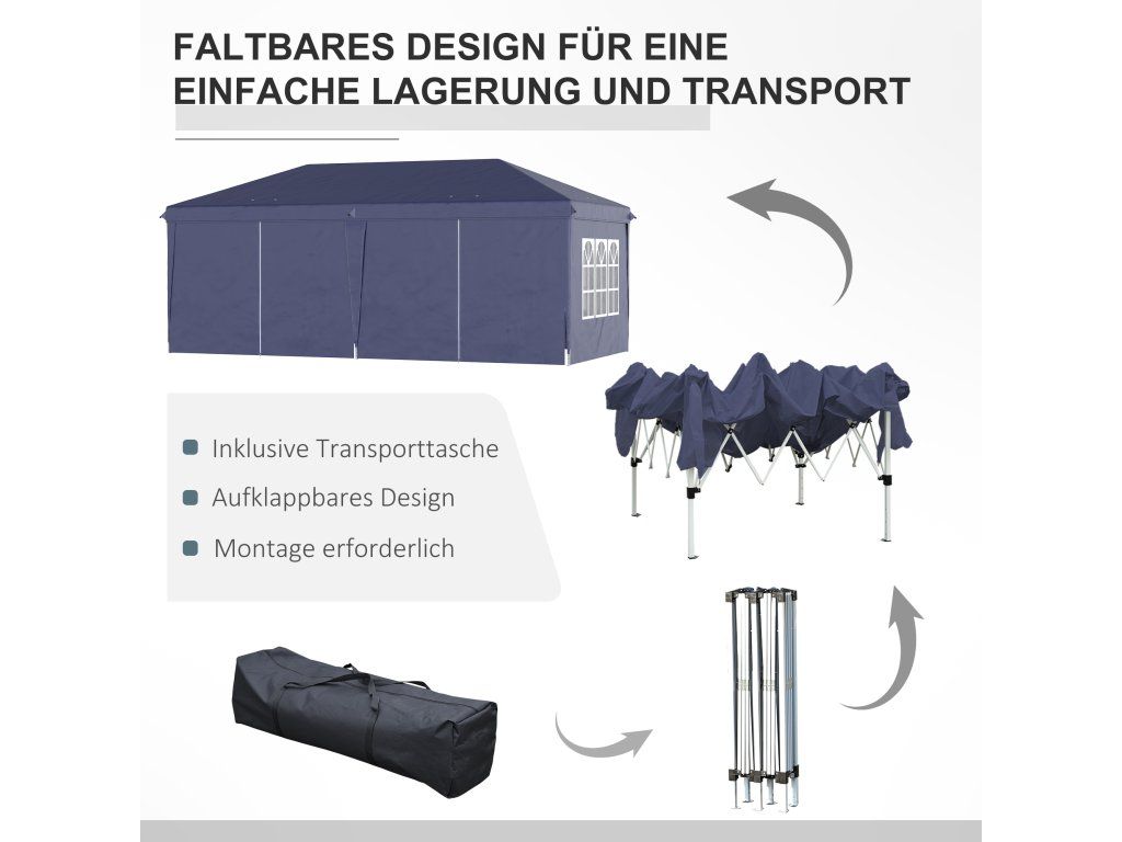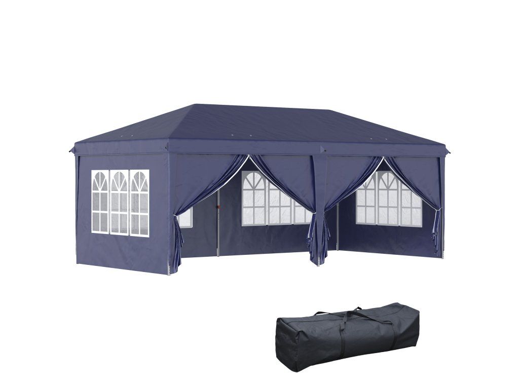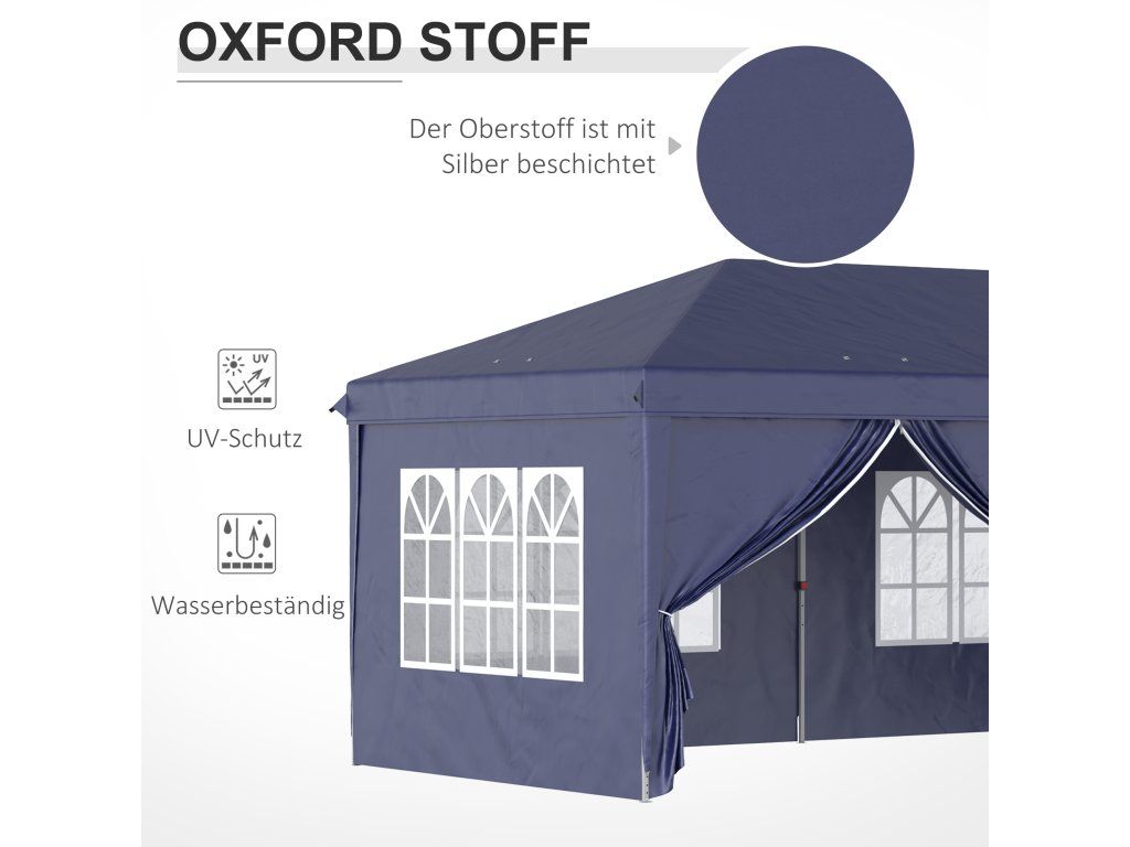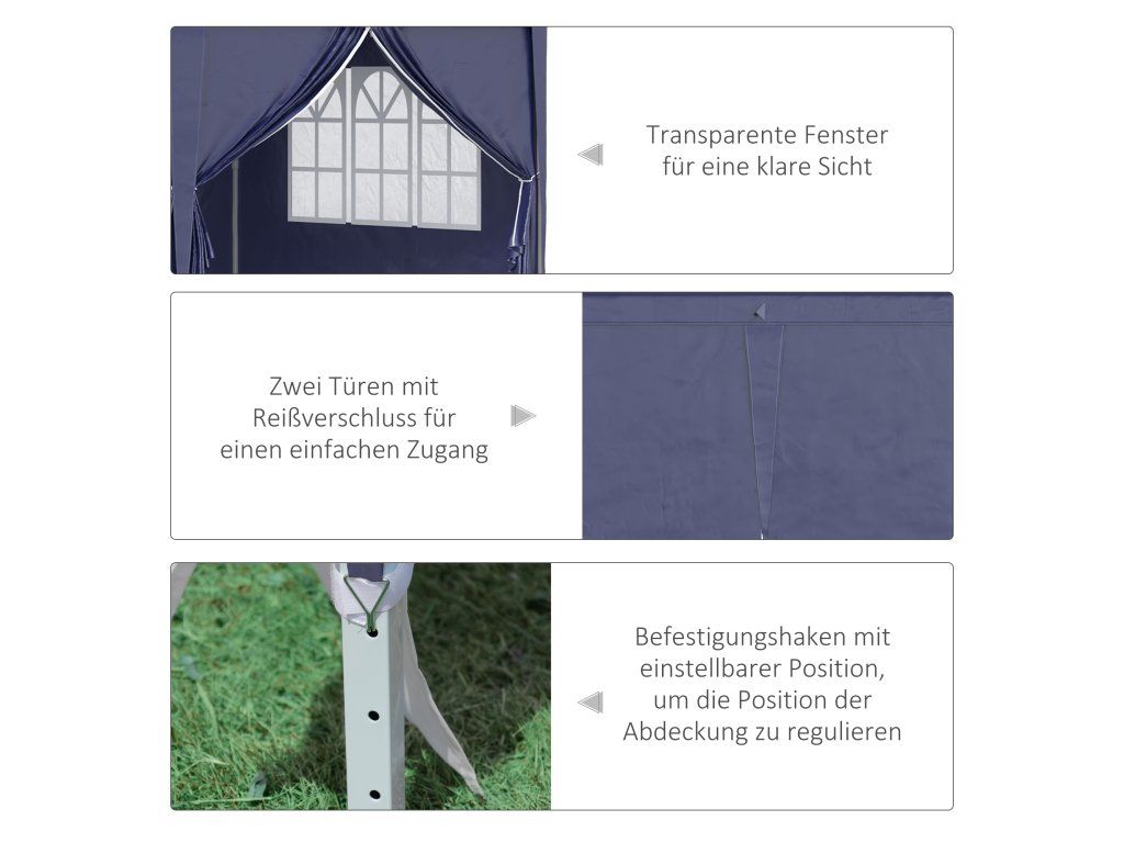 Se stylovým a odolným skládacím altánem Outsunny bude vaše zahradní párty naprostý úspěch! Pevný ocelový rám a odolná plachta zajišťují stabilitu a ochranu před sluncem a mrholením. Praktická okna a 2 dveře na zip umožňují dobré větrání a snadný přístup, přičemž boční panely lze v případě potřeby sejmout. Ať už se jedná o zahradní párty, svatbu nebo bleší trh – tento pivní stan je dokonalým společníkem pro jakoukoli outdoorovou aktivitu.