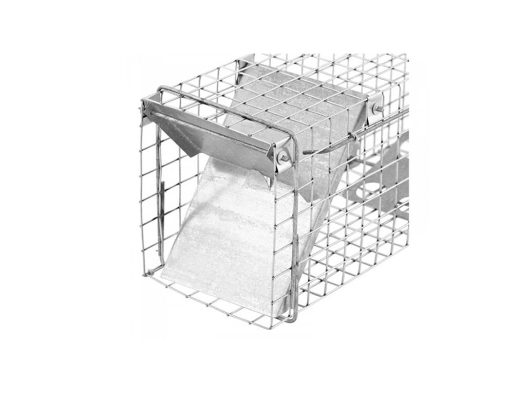 Návnada (vejce, maso, chléb, ryby, …) se snadno umístí doprostřed pasti prostřednictvím vstupních dvířek. Tu můžete umístit přímo na nášlapný mechanismus.