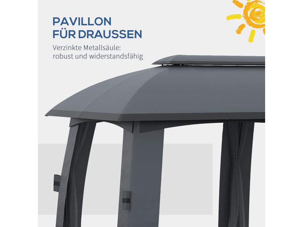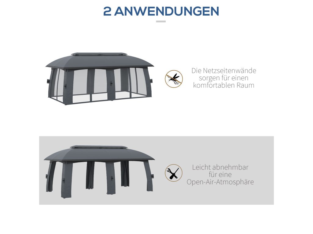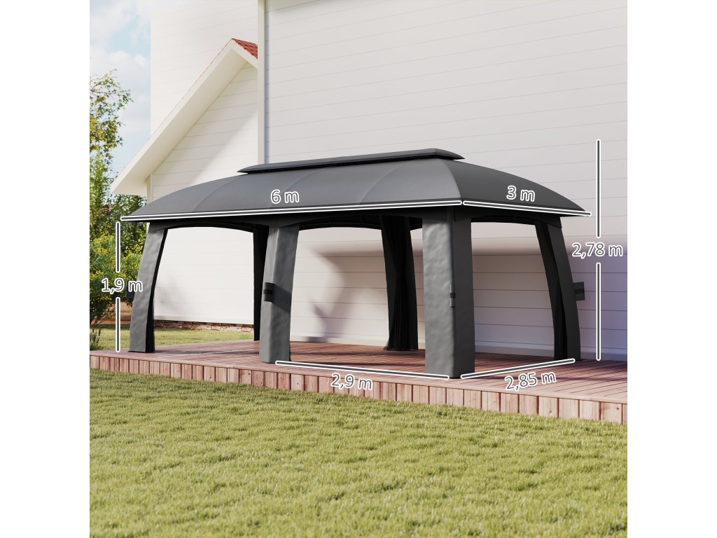 Pavilon Outsunny, párty stan, s mušími sítěmi, větrná střecha, až pro 15 osob, tmavě šedý, 3 x 6 x 3 m