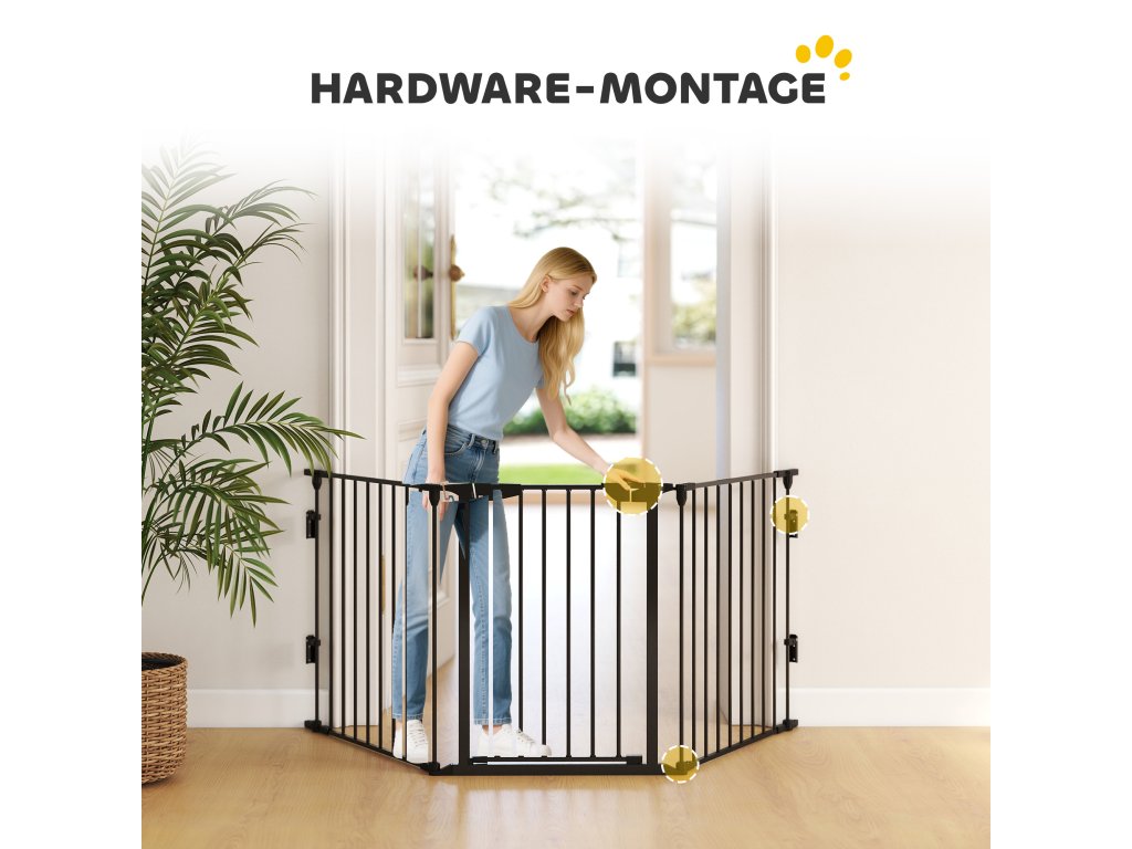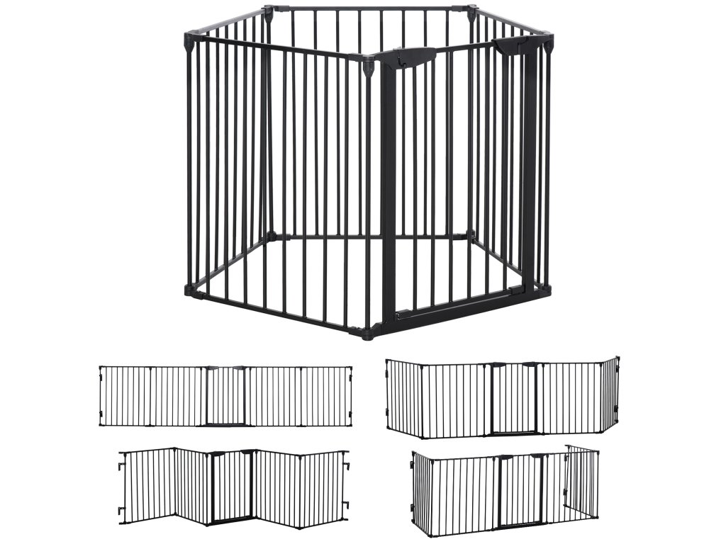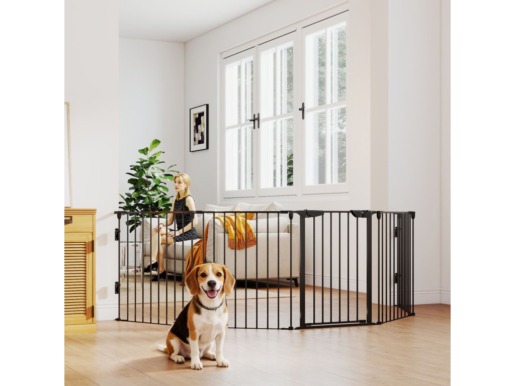 PawHut 2 v 1, zábrana, ohrádka, bezpečnostní brána, skládací, kovová, 300 x 3 x 74,5 cm, černá