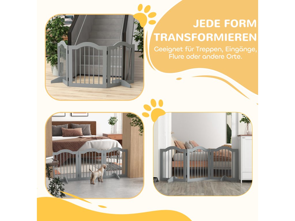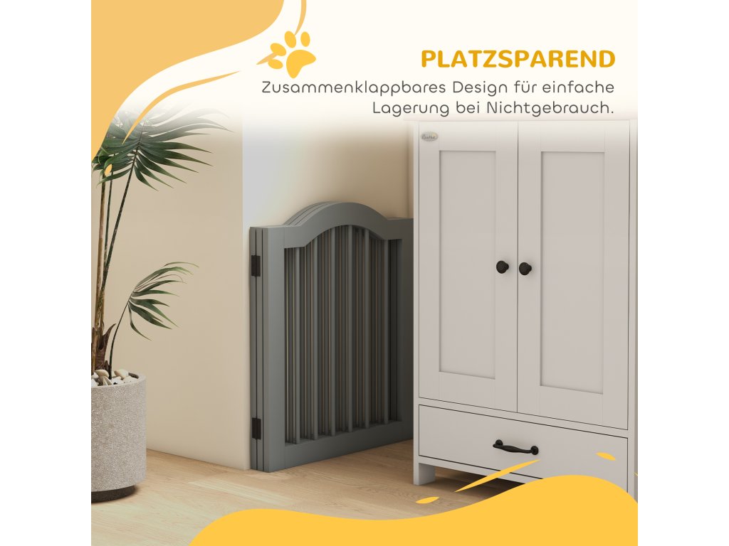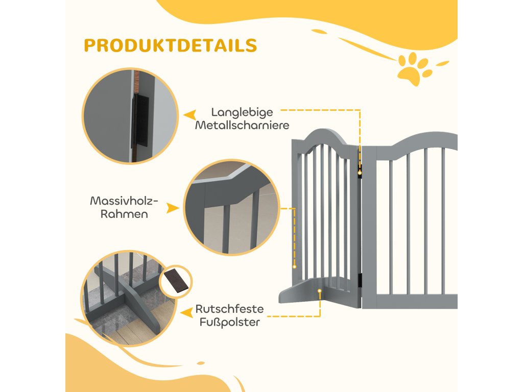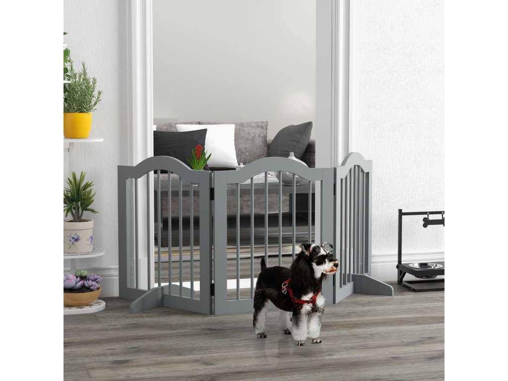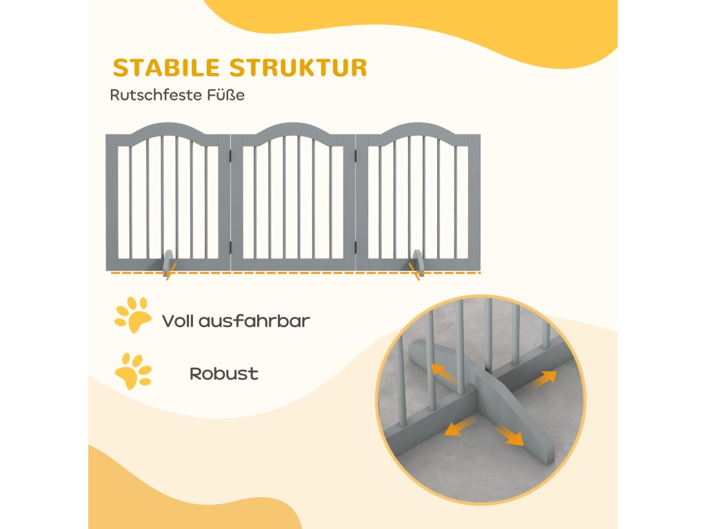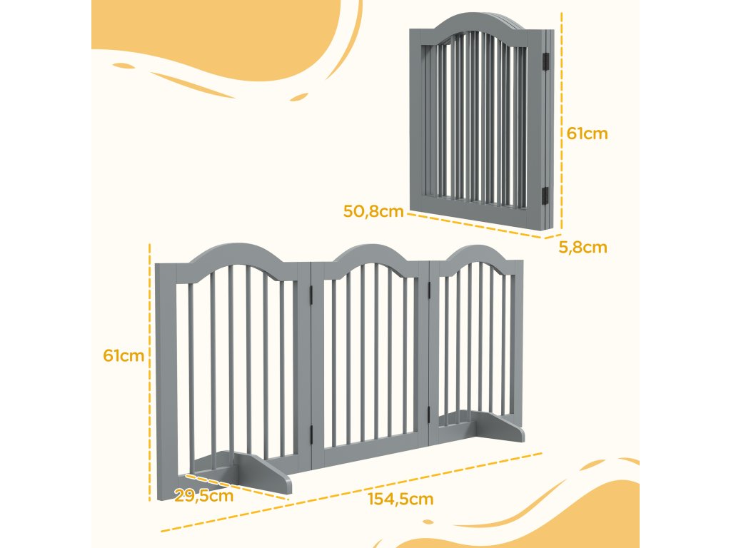 PawHut 3-dílný ohradník pro psy, 154,5 x 61 cm Skládací ohradník pro psy s dvířky, 2 podpěrné nohy Světle šedá barva