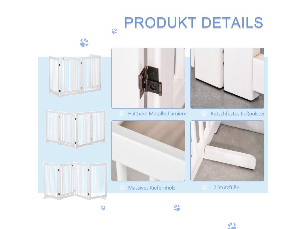 - Údaje o výrobku: Vhodný k použití jako hrazda na hlídání zvířat: Hmotnost výrobku: 9 kg. Dvě opěrné nožičky zajišťují dodatečnou stabilitu a udržují psí hrazdičku pevně na místě, takže ji vaši roztomilí miláčci nemohou převrhnout. Protiskluzové nožičky zabraňují poškrábání podlahy a také výrazně zvyšují bezpečnost.