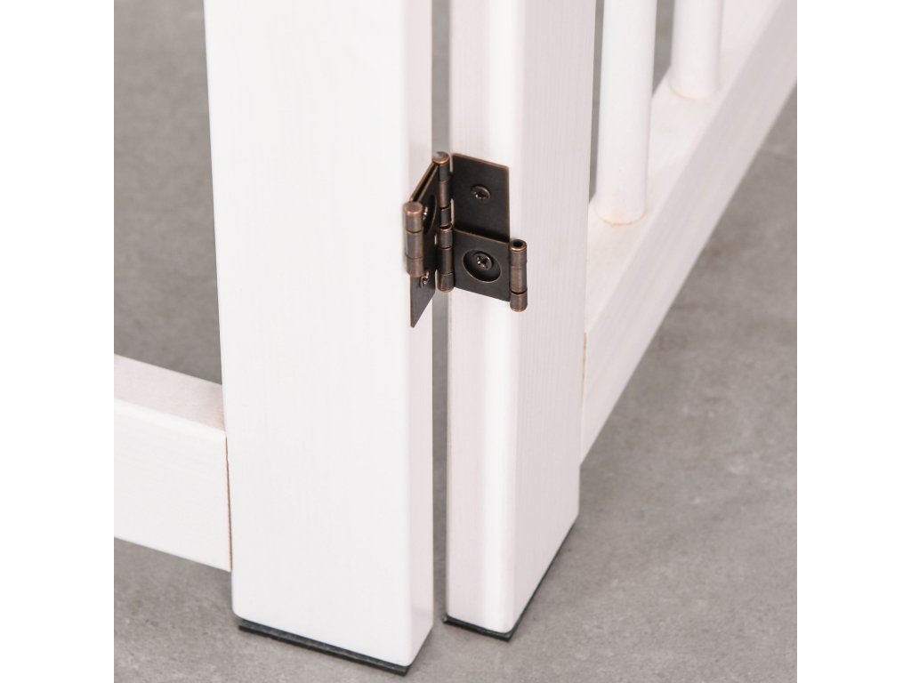 - Vysoce kvalitní materiál: Tato bílá bezpečnostní brána pro psy je vyrobena z masivního borovicového dřeva a nabízí nejen odolnost, ale také bezpečnost pro vašeho domácího mazlíčka. Hladký povrch minimalizuje riziko poranění a zajišťuje, že váš mazlíček zůstane v bezpečí, když jste venku.