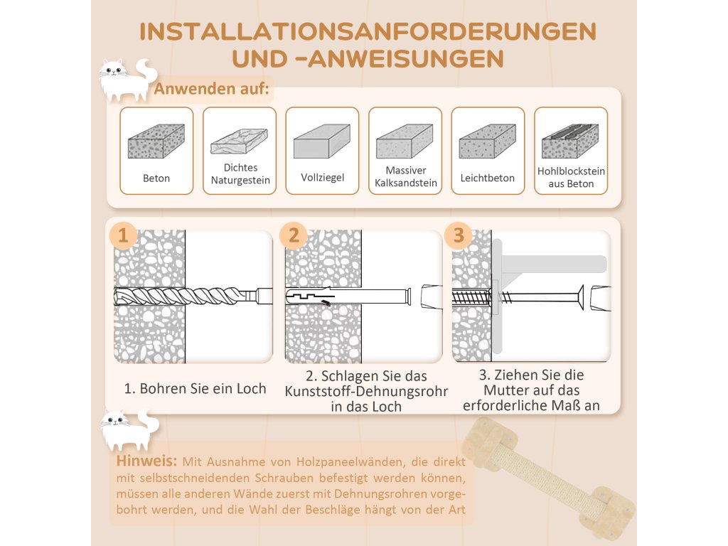 - Informace o sadě lezecké stěny pro kočky: Vhodná pro kočky o hmotnosti do 5 kg. Nutná montáž