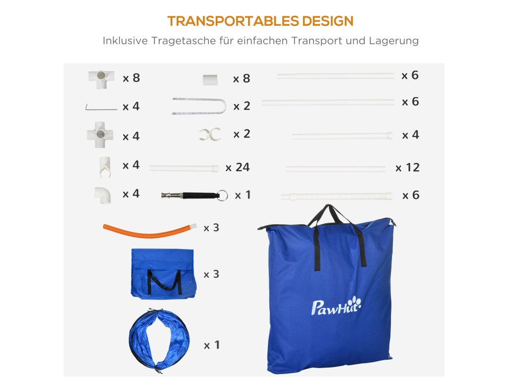 - Pohodlná přeprava: Díky přiložené přenosné tašce si můžete vybavení pro psí agility vzít kamkoli s sebou. Postavte jej v parku, na zahradě nebo na jiném vhodném místě a vytvořte si tak nekonečné možnosti tréninku.