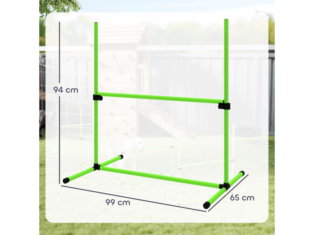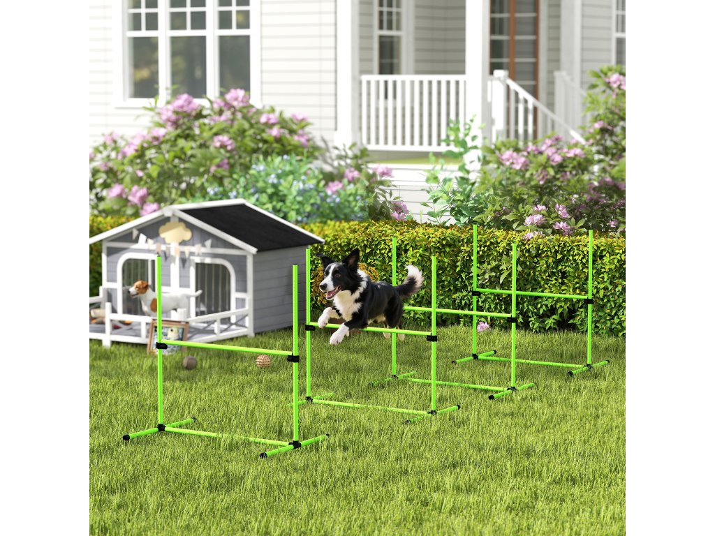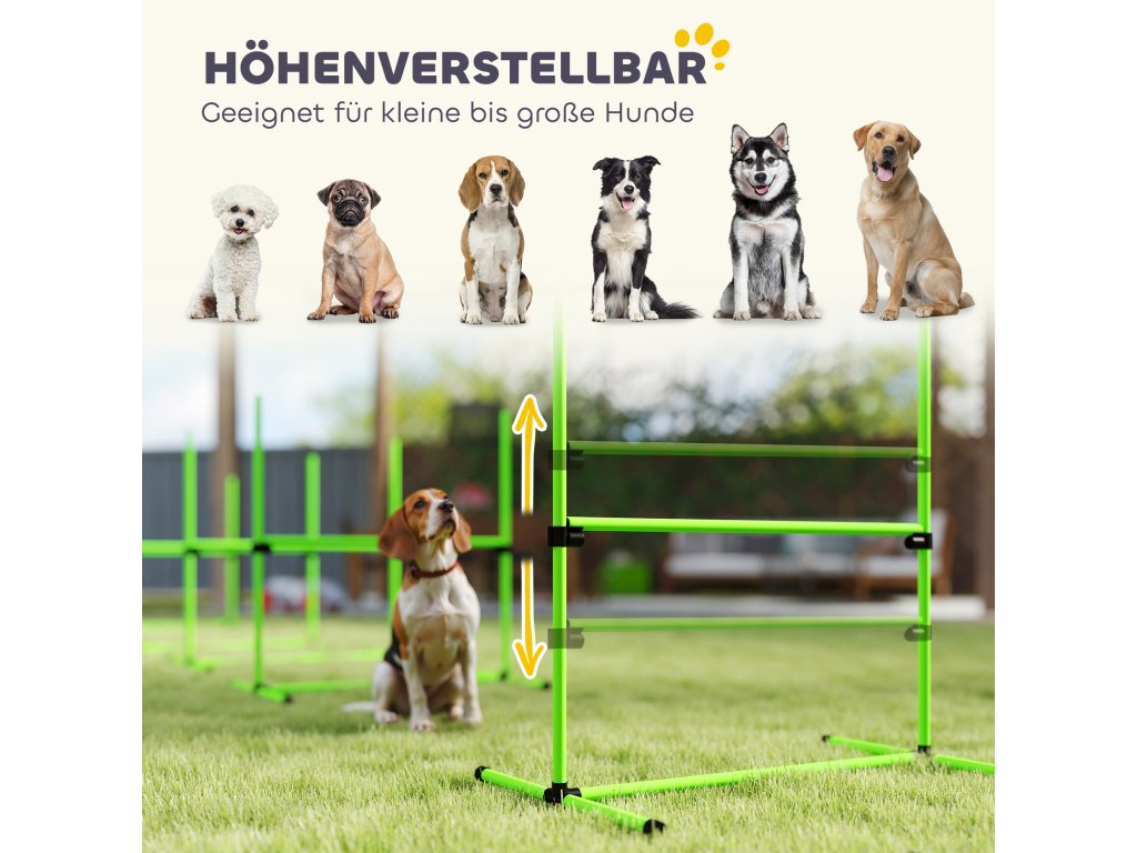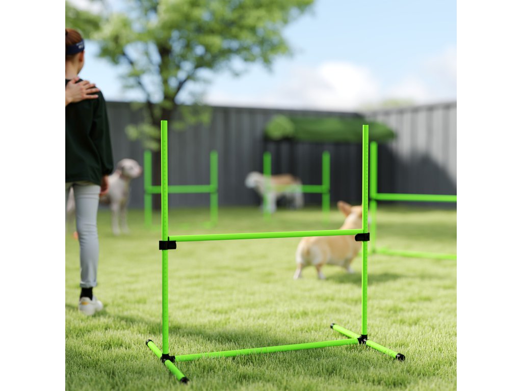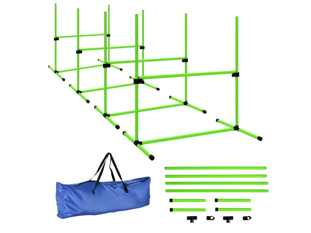 PawHut Agility Set pro psy, 4dílná výškově nastavitelná agility sada se 4 překážkami, přepravní taška, 99 x 65 x 94 cm, zelená