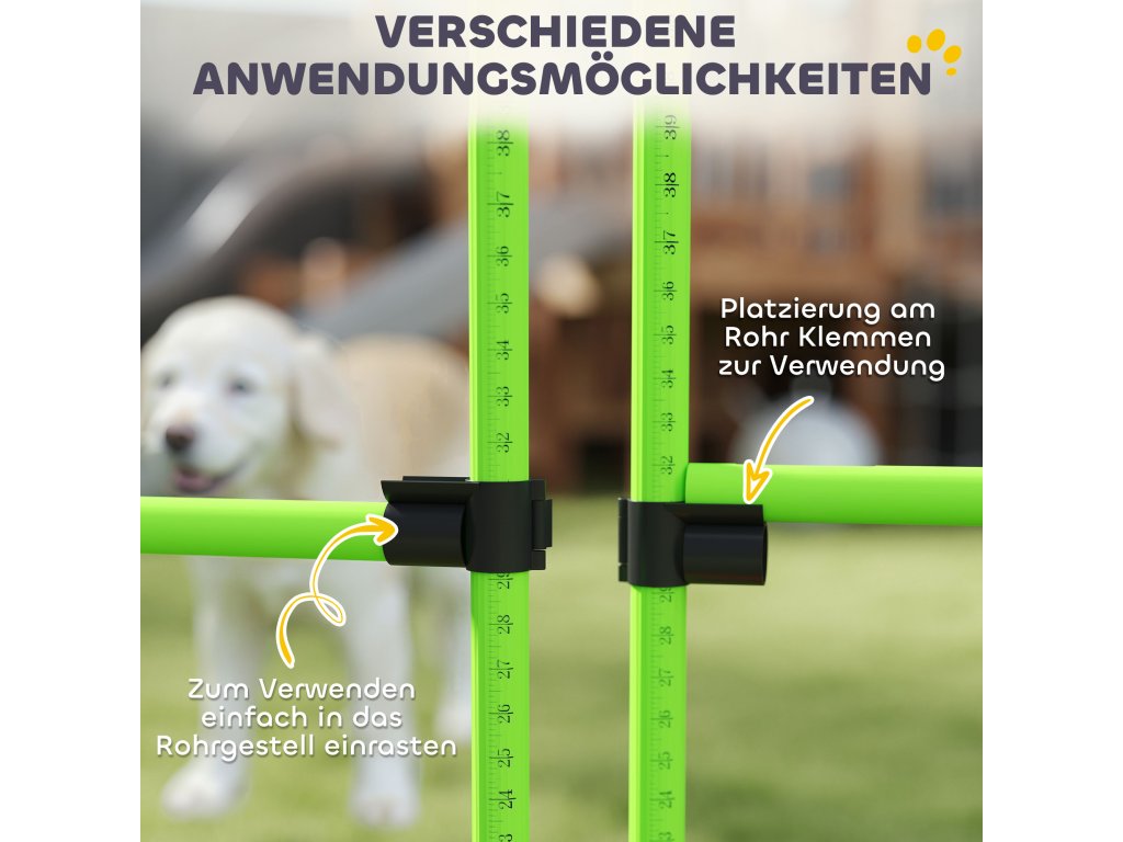 Roste s vaším psem: Výškově nastavitelná konstrukce agility sady roste s vaším psem a díky svým velkorysým rozměrům nabízí prostor pro vše od hravých štěňat až po velká, aktivní plemena. Stabilní a bezpečný trénink: Díky své odolné konstrukci zůstává agility sada pro psy pevně na místě i během živé hry, čímž zabraňuje převrácení a poskytuje bezpečné místo pro trénink vašeho mazlíčka.