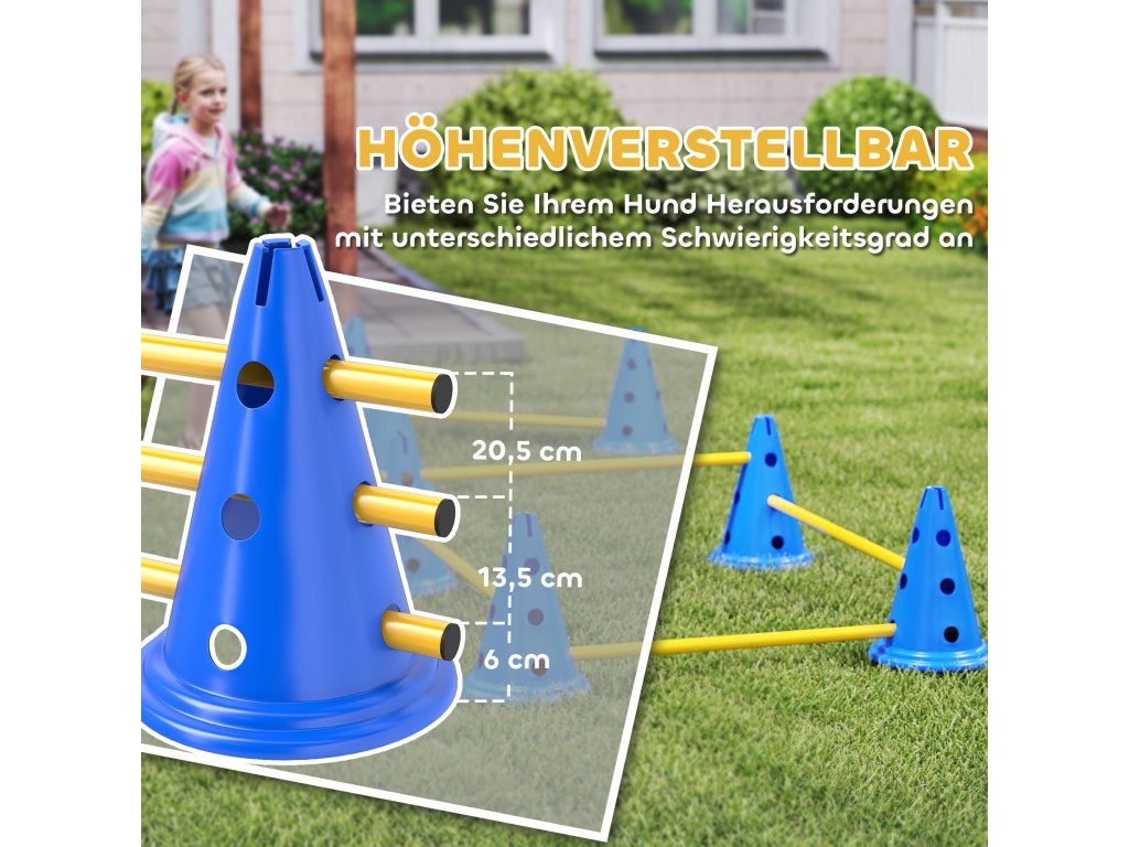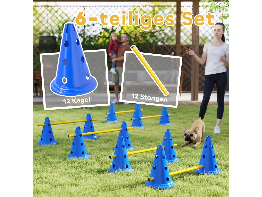 ✔ 6dílná sada pro agility obsahuje 12 kuželů, 12 tyčí a úložný vak