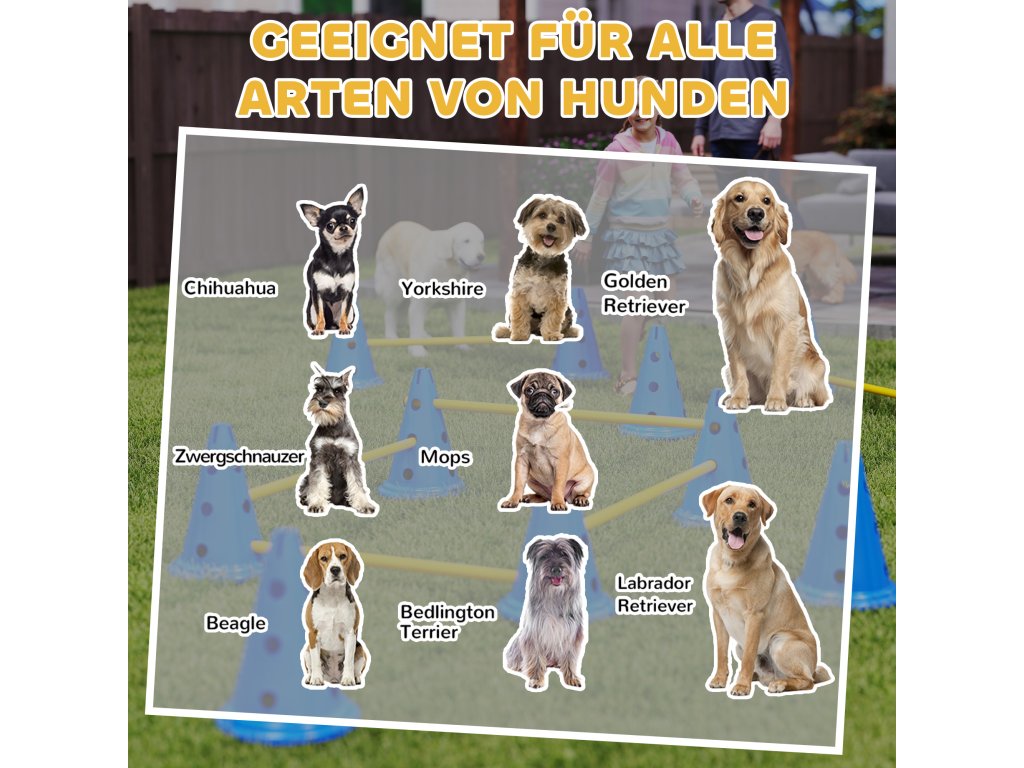 ✔ Tři nastavitelné výšky překážkové dráhy se přizpůsobí různým velikostem psů
