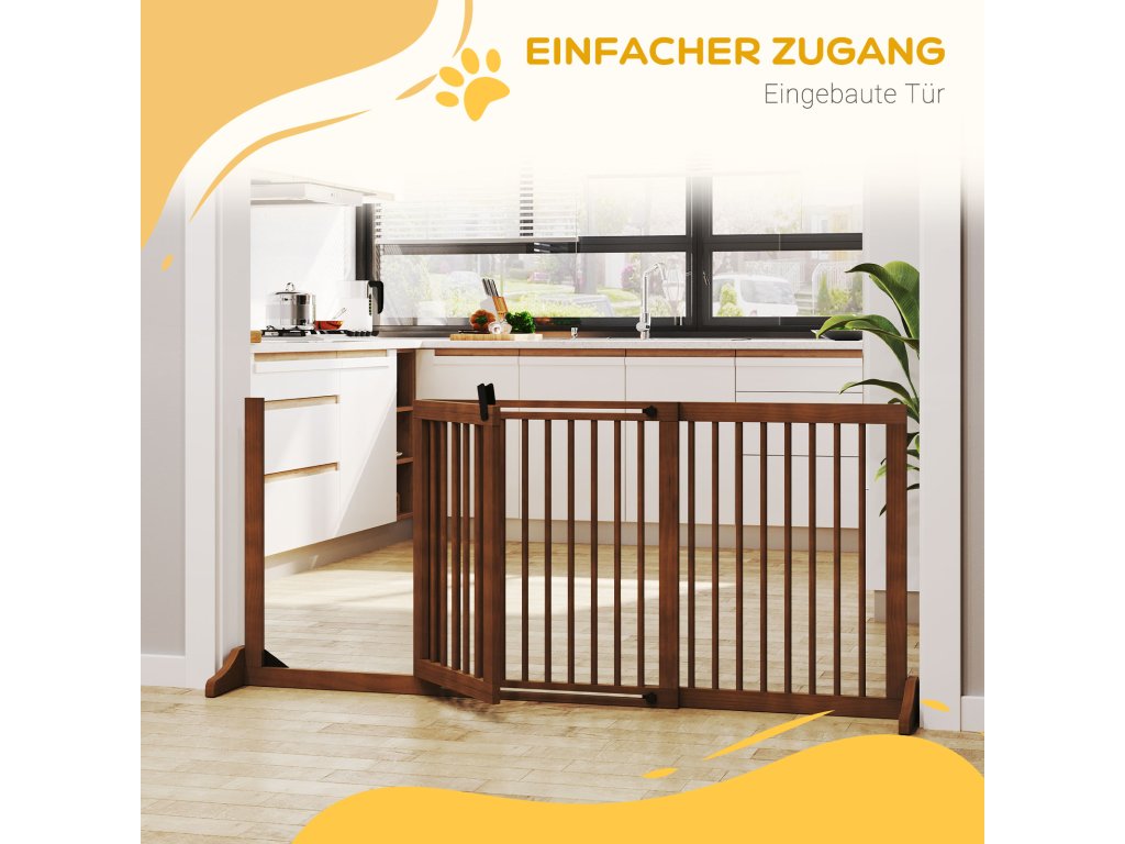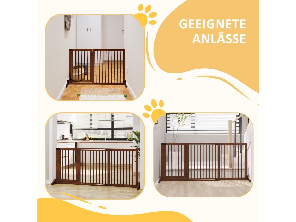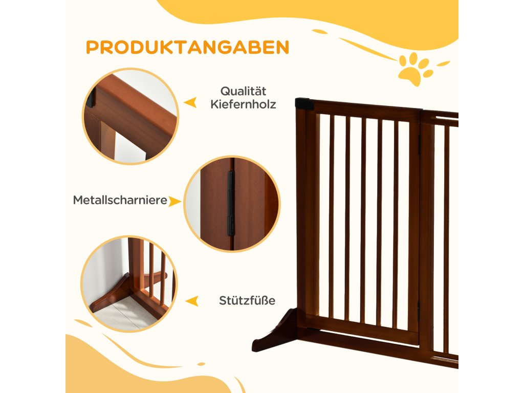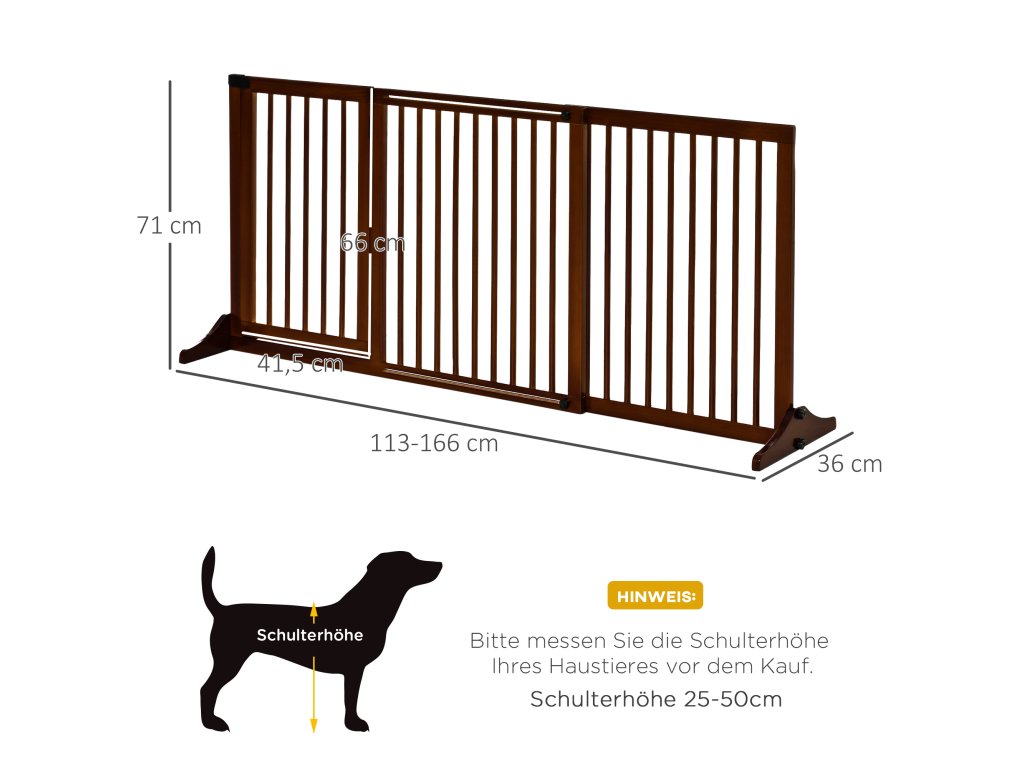 PawHut Bariérová mřížka pro psy Ochranná mřížka na dveře Dřevěná ochranná mřížka Volně stojící mřížka pro psy s dveřmi Bariérová mřížka pro psy Konfigurační mřížka pro krb a kamna Hnědá 113-166 x 36 x 71 cm