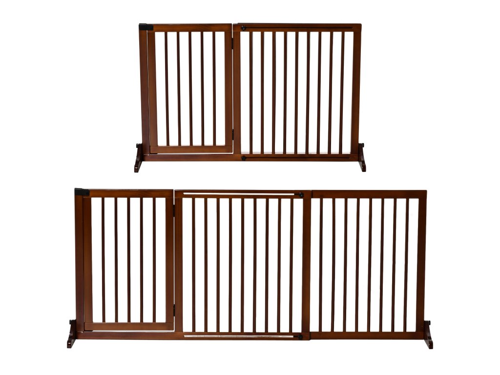 - VYSOCE KVALITNÍ MATERIÁL: Vyrobeno z odolného masivního borovicového dřeva s povrchovou úpravou hnědým lakem. Brána pro domácí mazlíčky je odolná a vhodná pro domácí mazlíčky. Hladký povrch poskytuje dodatečnou bezpečnost a udržuje vaše domácí mazlíčky bezpečně uzavřené, zatímco jste pryč.
