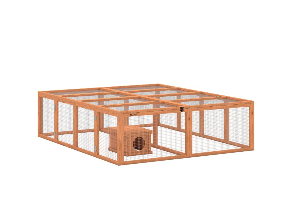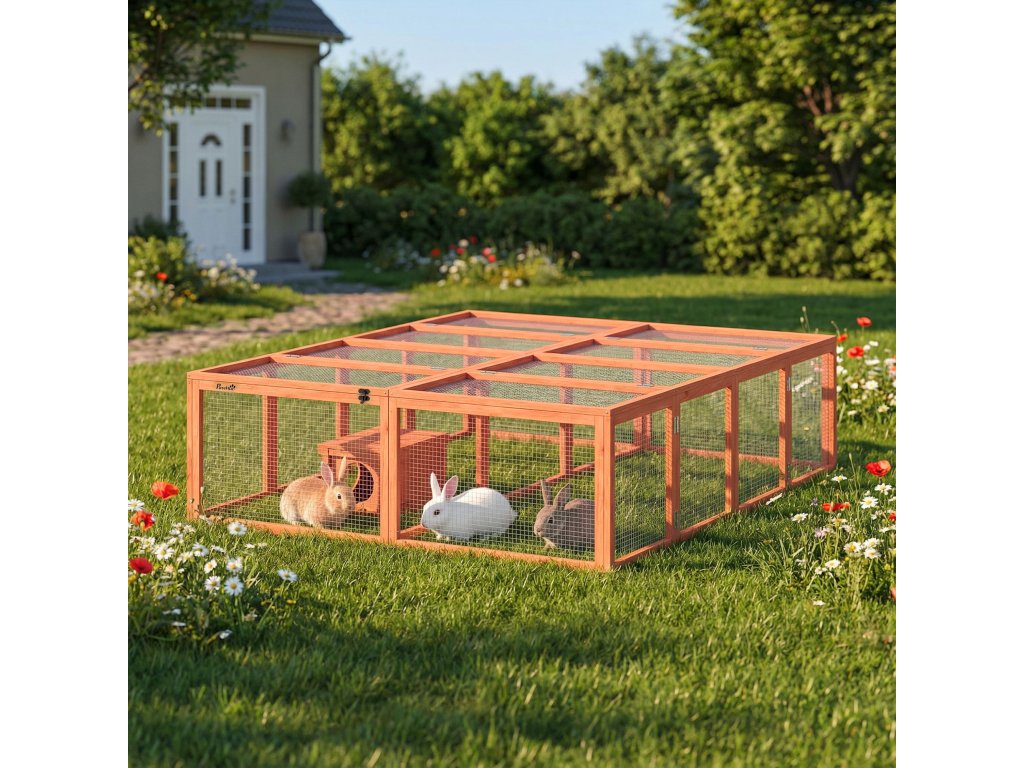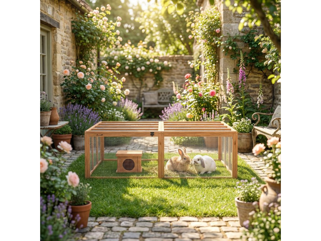 Modulární a flexibilní design: Snadno zkombinujte dvě králíkárny a vytvořte si extra velkou herní plochu nebo je používejte samostatně. Tento promyšlený design se bez problémů začlení do vaší zahrady a flexibilně se přizpůsobí potřebám vaší rodiny.