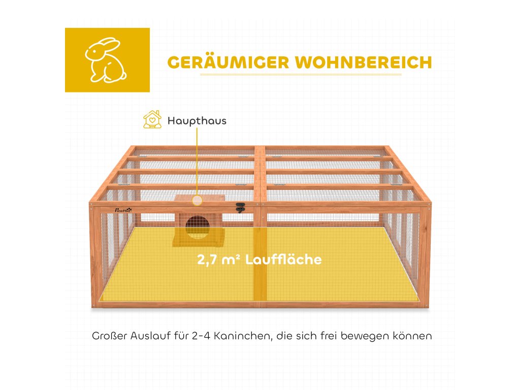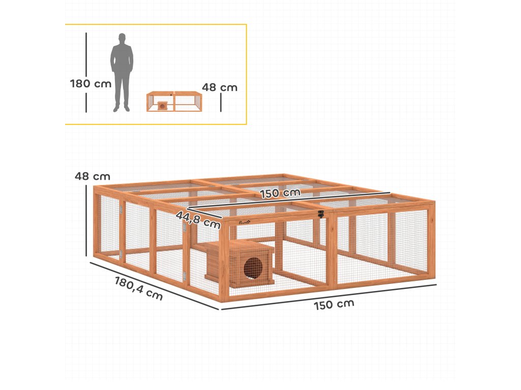 PawHut Dřevěná venkovní králíkárna se 2 dvířky, přístřešek pro 2-4 zakrslé králíky, 180,4 x 150 x 48 cm, oranžová