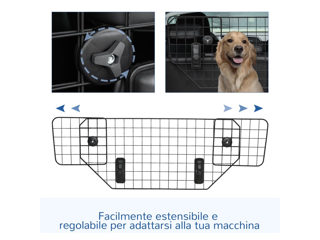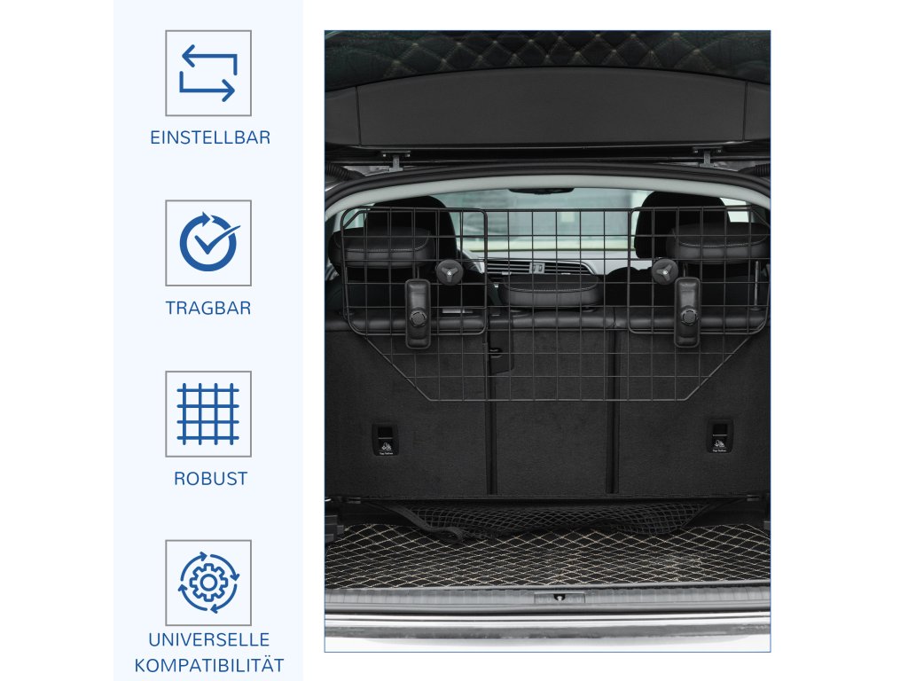 S touto robustní přepážkou můžete svého mazlíčka bezpečně přepravovat v autě. Tuto mříž s nastavitelnou velikostí jsme vyvinuli tak, abyste ji mohli používat bez ohledu na velikost vašeho vozidla. Šířku lze plynule nastavit, a proto ji lze přizpůsobit příslušnému vozidlu. Nyní můžete v zavazadlovém prostoru bezpečně přepravovat svého domácího mazlíčka nebo zavazadla.
