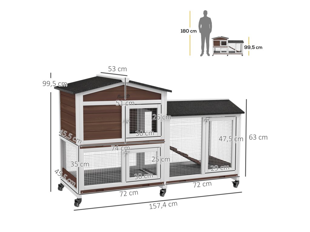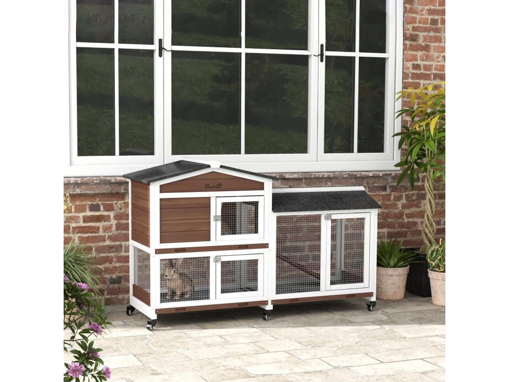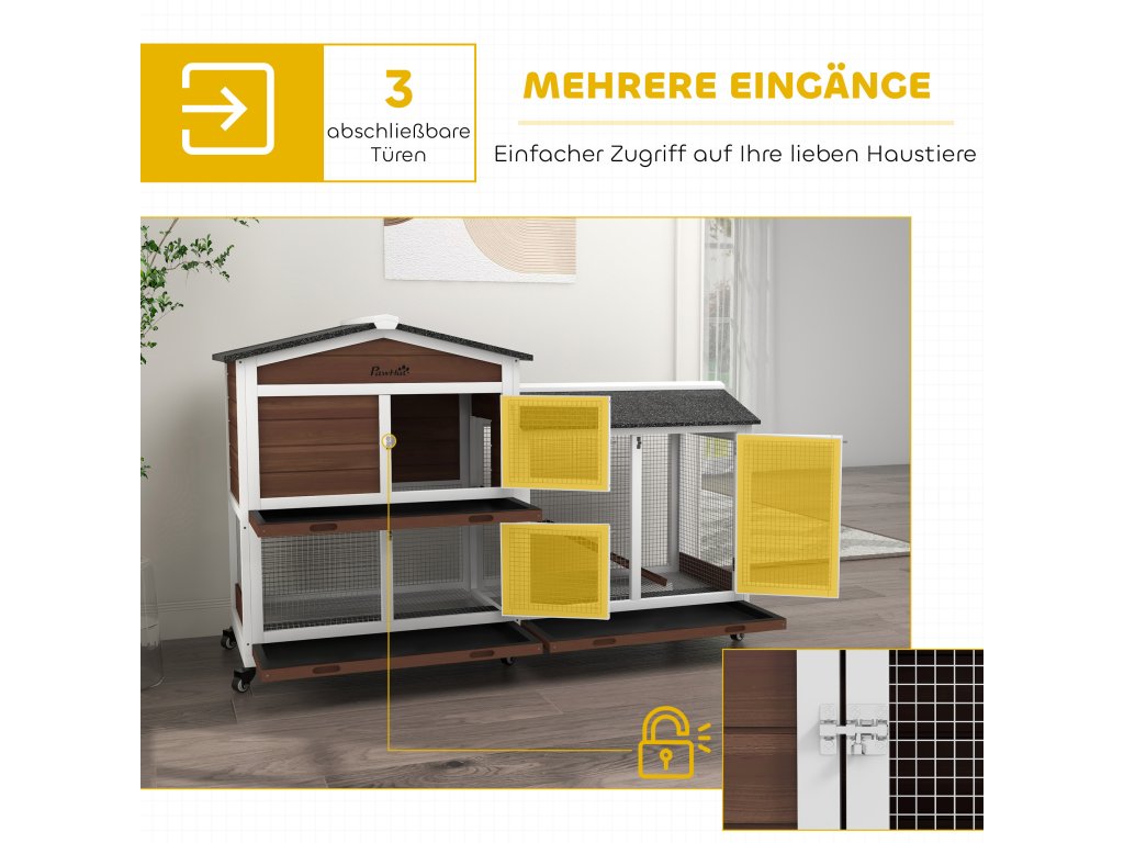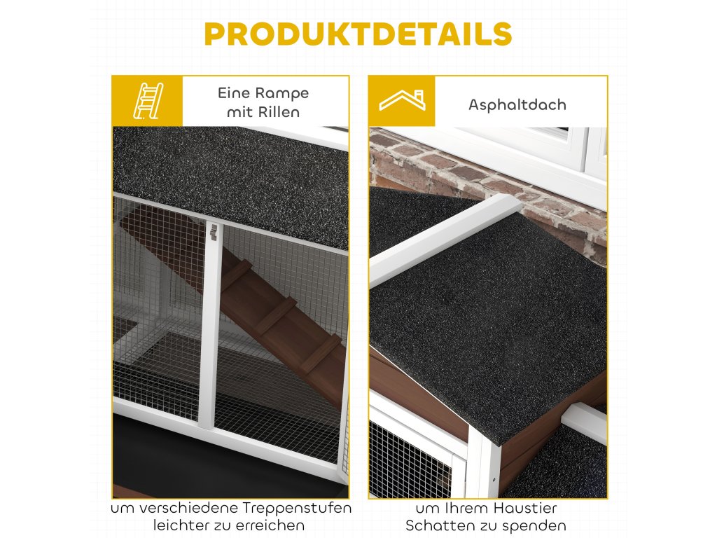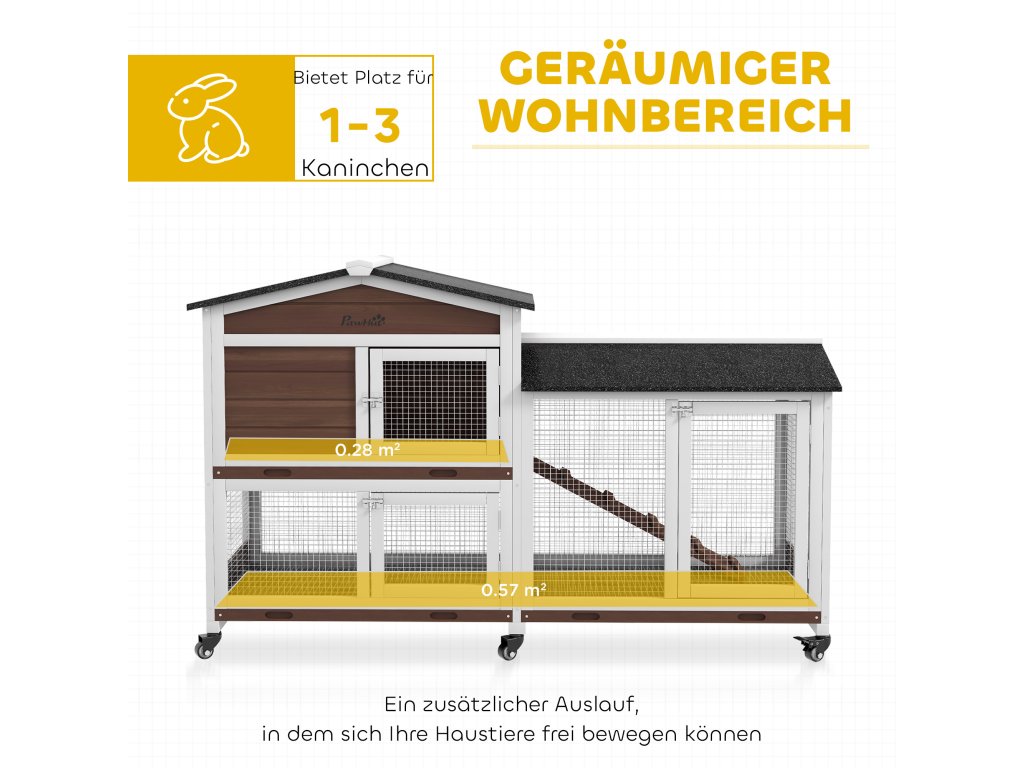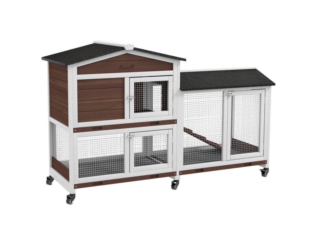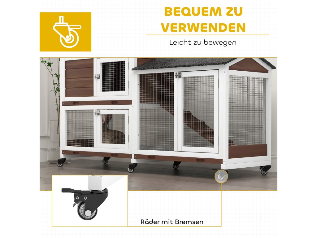 PawHut Klec pro malá zvířata s kolečky, Klec pro zakrslé králíky, Venkovní výběh, Asfaltová střecha, Klec pro malá zvířata, Výběh pro zakrslé králíky, Dřevo, Ocel, Hnědá