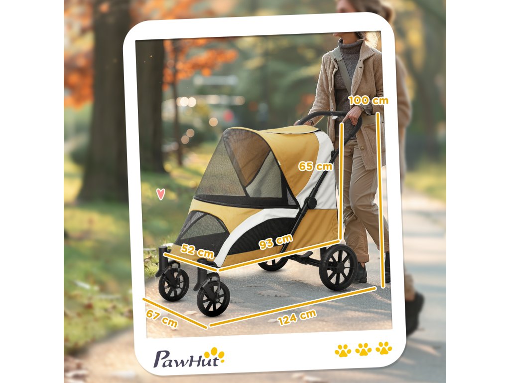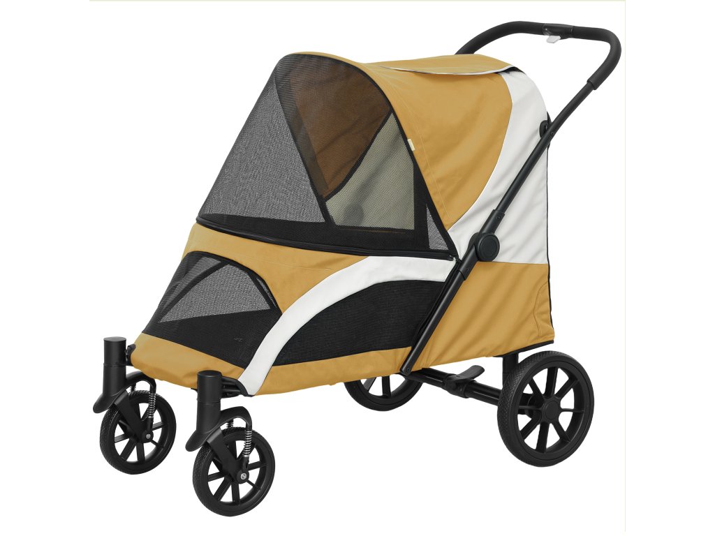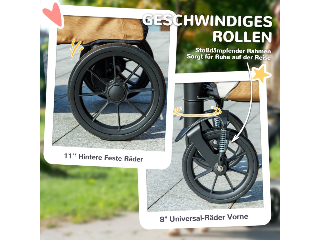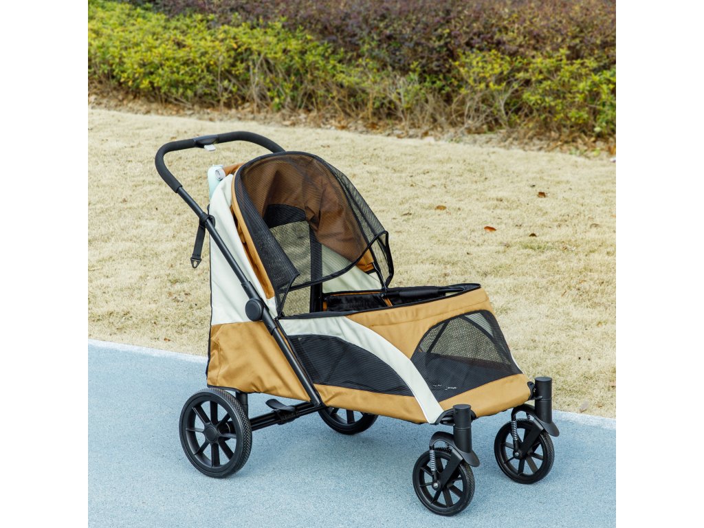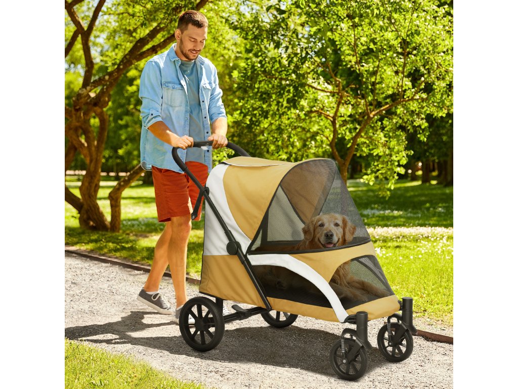 PawHut kočárek pro psy, skládací kočárek pro velké psy, kočárek pro domácí mazlíčky se 4 koly, bezpečnostní vodítka, brzdy, hnědý